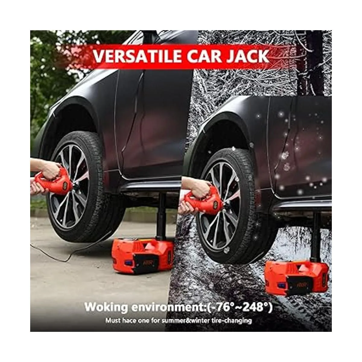 Conector hidráulico eléctrico 4 en 1: el gato eléctrico para coche debe utilizarse en un suelo plano y firme Este gato hidráulico eléctrico 4 en 1 viene en un gato hidráulico eléctrico, una bomba de aire y una llave de impacto. El gato eléctrico para coche es capaz de levantar el coche menos de 5 toneladas hasta alcanzar su altura máxima rango de altura: 5.9 17.7 pulgadas en 2 minutos