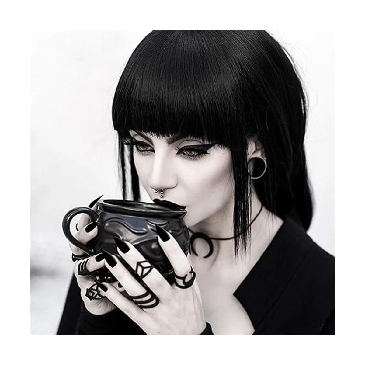 Diseño: taza de caldero de brujas malvadamente detallada para tu café, té, café con leche de calabaza o cerveza mágica Esculpido con increíbles diseños místicos en forma de caldero sobre una base de troncos de fuego para recordar un caldero de hierro fundido real. Los detalles son increíbles, es muy espacioso de 13.5 fl oz y está hecho de porcelana negra. Si eres un mago prometedor, bruja o cualquier otro ser mágico, esta espaciosa taza de café será tu accesorio favorito para beber y una preciosa adición a tu taza de calabaza.
