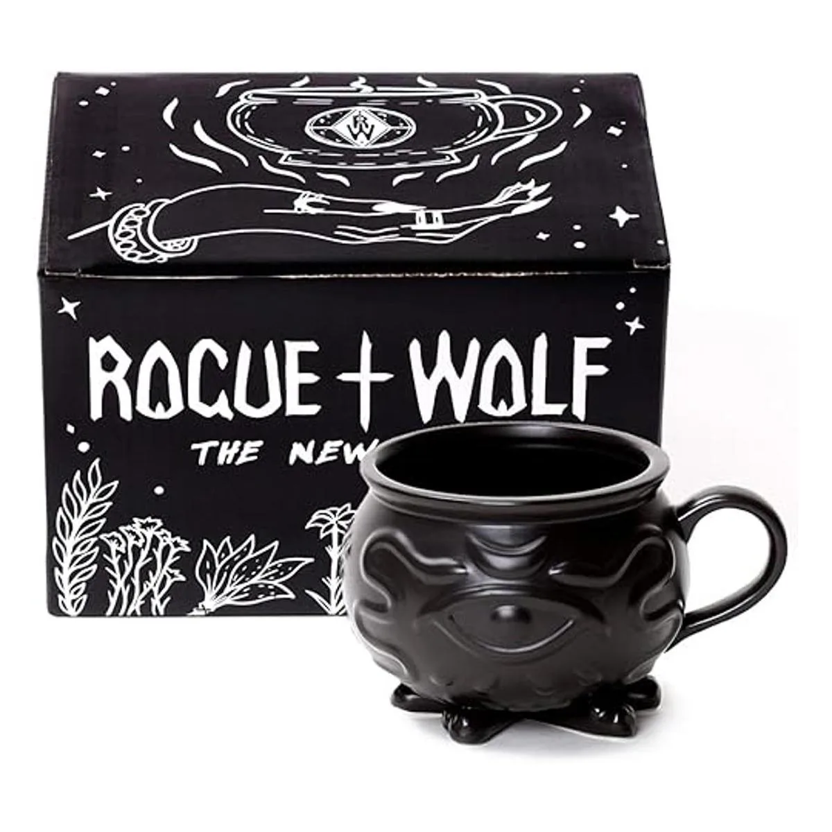Rogue Wolf Taza de café de caldero de bruja en caja de regalo para Halloween, regalos espeluznantes, tazas de otoño fantasma para hombres y mujeres, taza gótica de porcelana 3D, bruja gótica, cocina, brujería navideña, 14 onzas, 13.5 fl oz