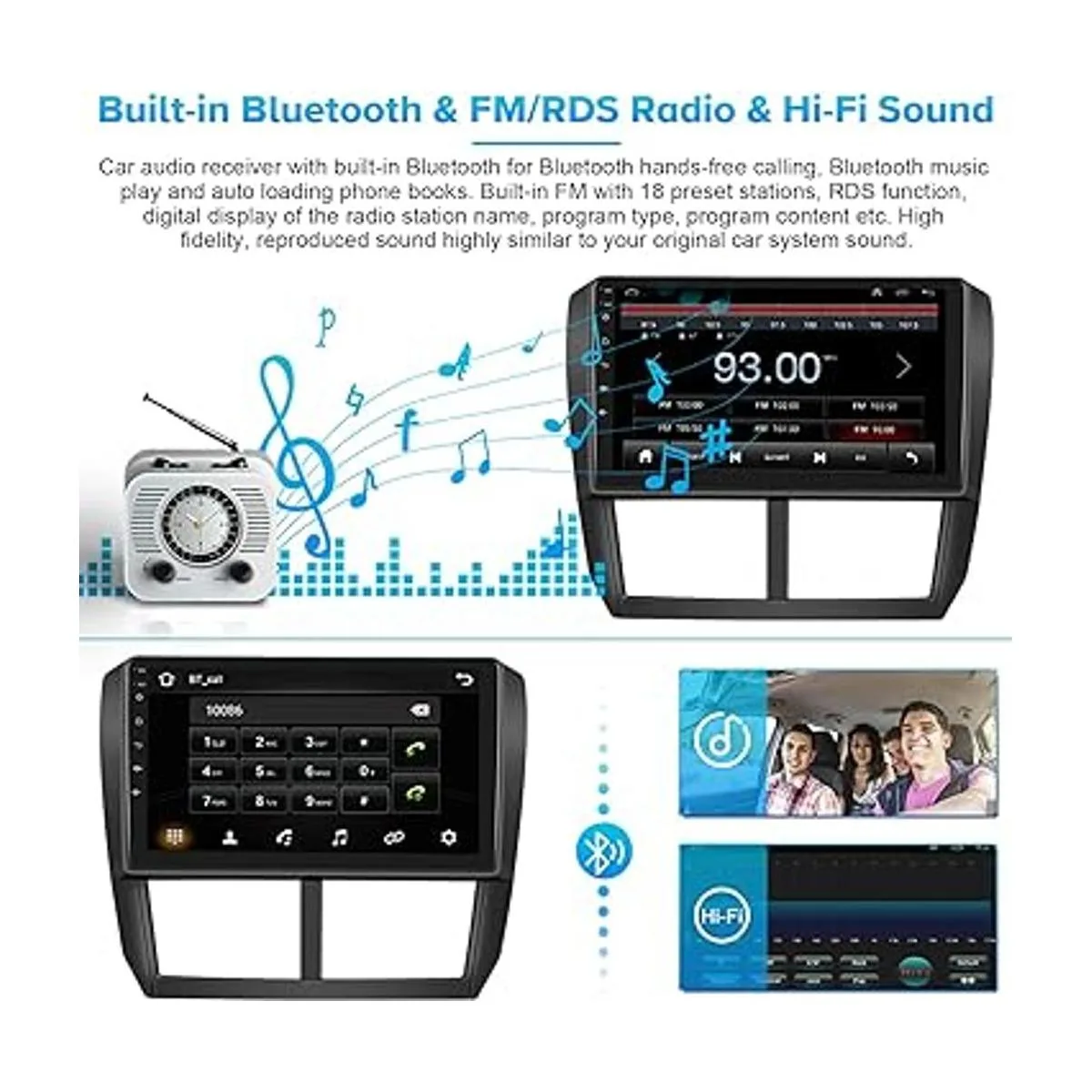 Estéreo de coche Android para Subaru Forester 20082012 Esta radio de coche Android doble DIN viene con una pantalla táctil HD 1080P de 9 pulgadas. 2 GB RAM 32 GB ROM de memoria. Compatible con cámara de respaldo AHD incluida, pantalla dividida y funciones de salida de video, interfaz USB dual, administrador de archivos, multilinge, ajuste de hora y soporta micrófonos externos incluidos, cámara de salpicadero USB, OBD, SWC, DAB. La función HiFi reproduce un sonido muy similar al original.