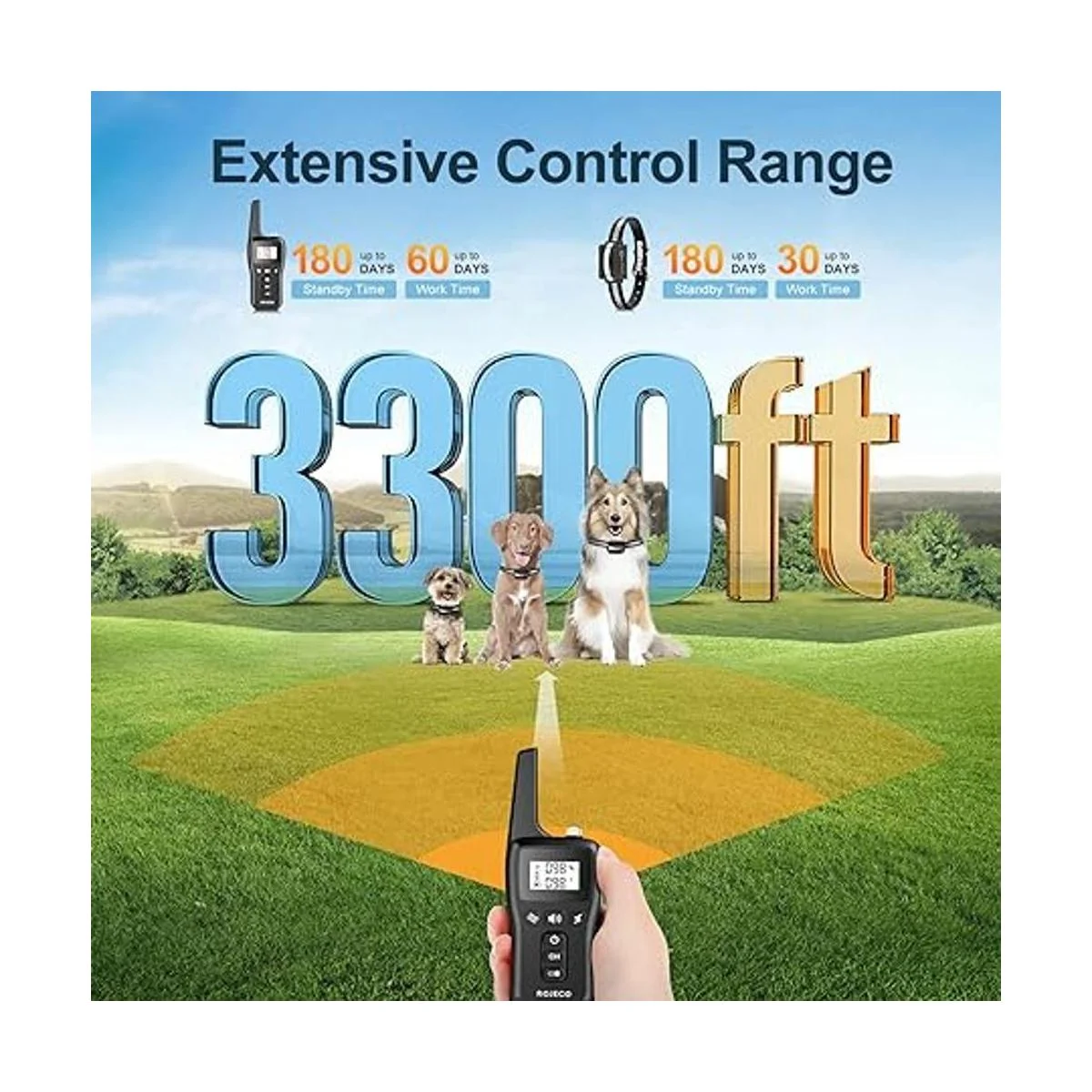 ROJECO Collar de entrenamiento para perros con control remoto de 3300 pies, IPX7 impermeable recargable para perros grandes, medianos y pequeños, 3 modos de entrenamiento seguros con pitido, vibración y golpes, collar electrónico ajustable para perros