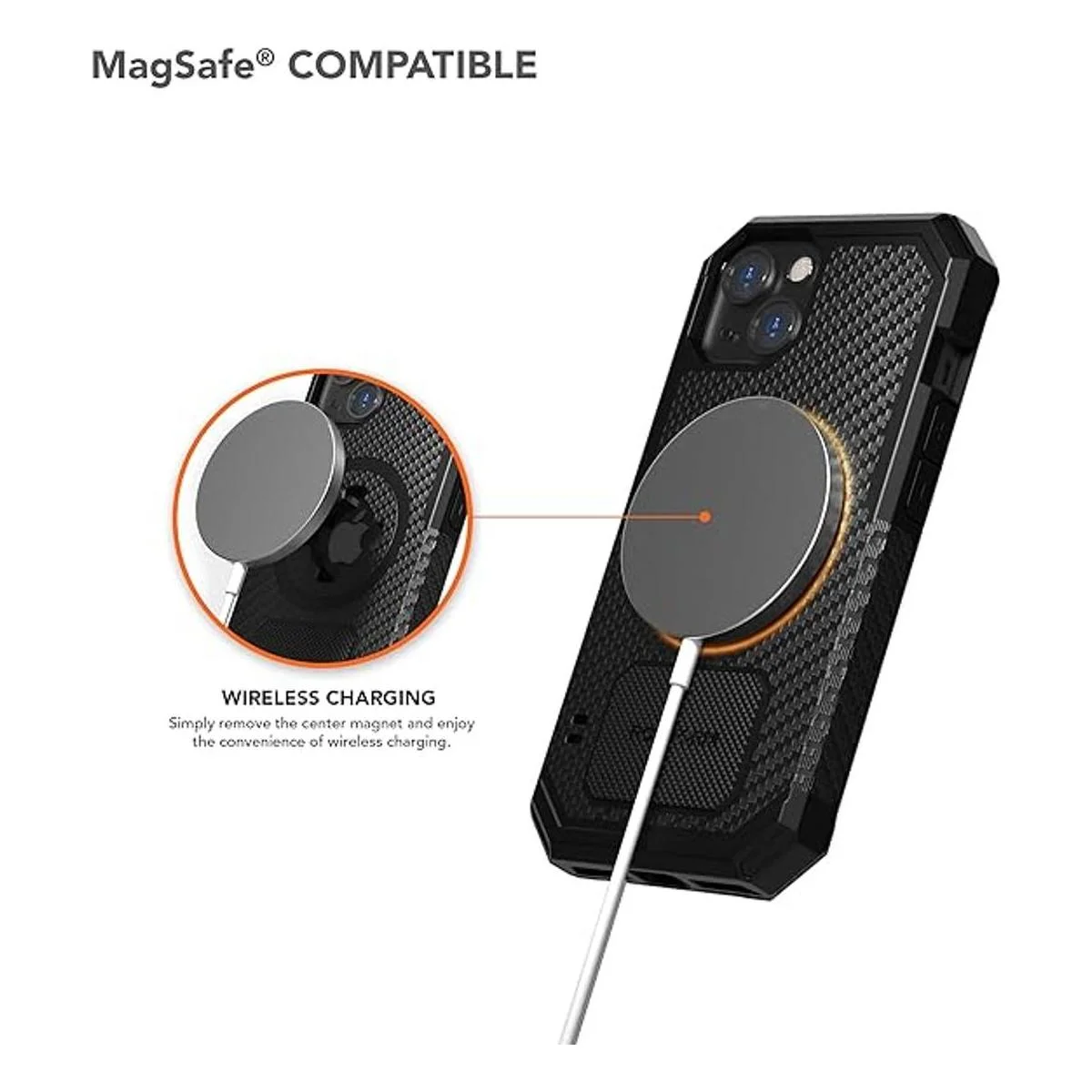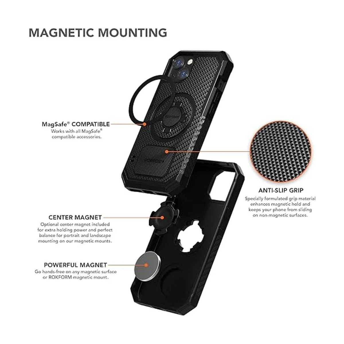 Rokform Funda para iPhone 13, serie resistente, doble imán Plus compatible con MagSafe, equipo protector magnético de Apple, cubierta para iPhone con bloqueo giratorio RokLock, armadura probada en caídas negro