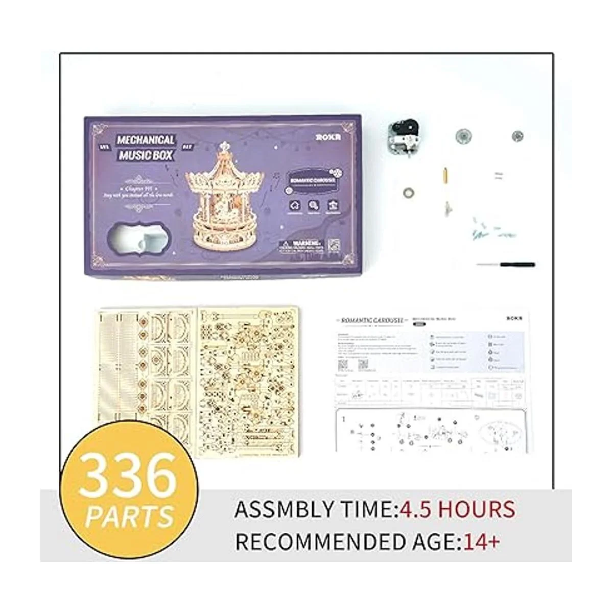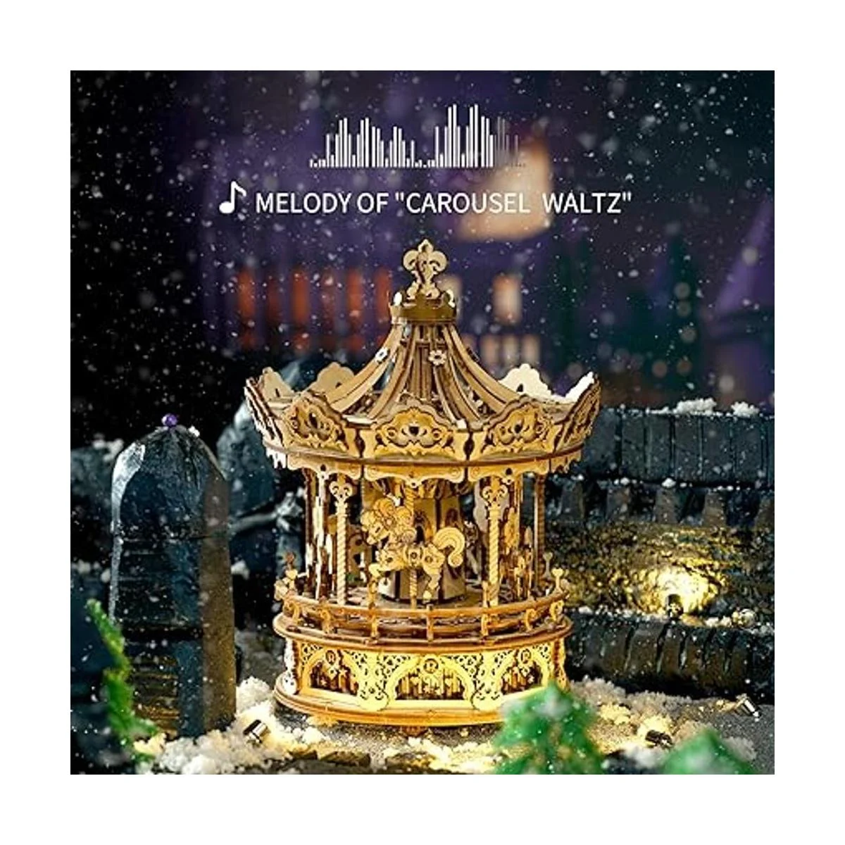 ROKR Kits de construcción de modelo de carrusel de madera 3D, caja de música giratoria de 5 caballos, regalo de cumpleaños de Navidad para niños, niñas, hija, esposa, novia