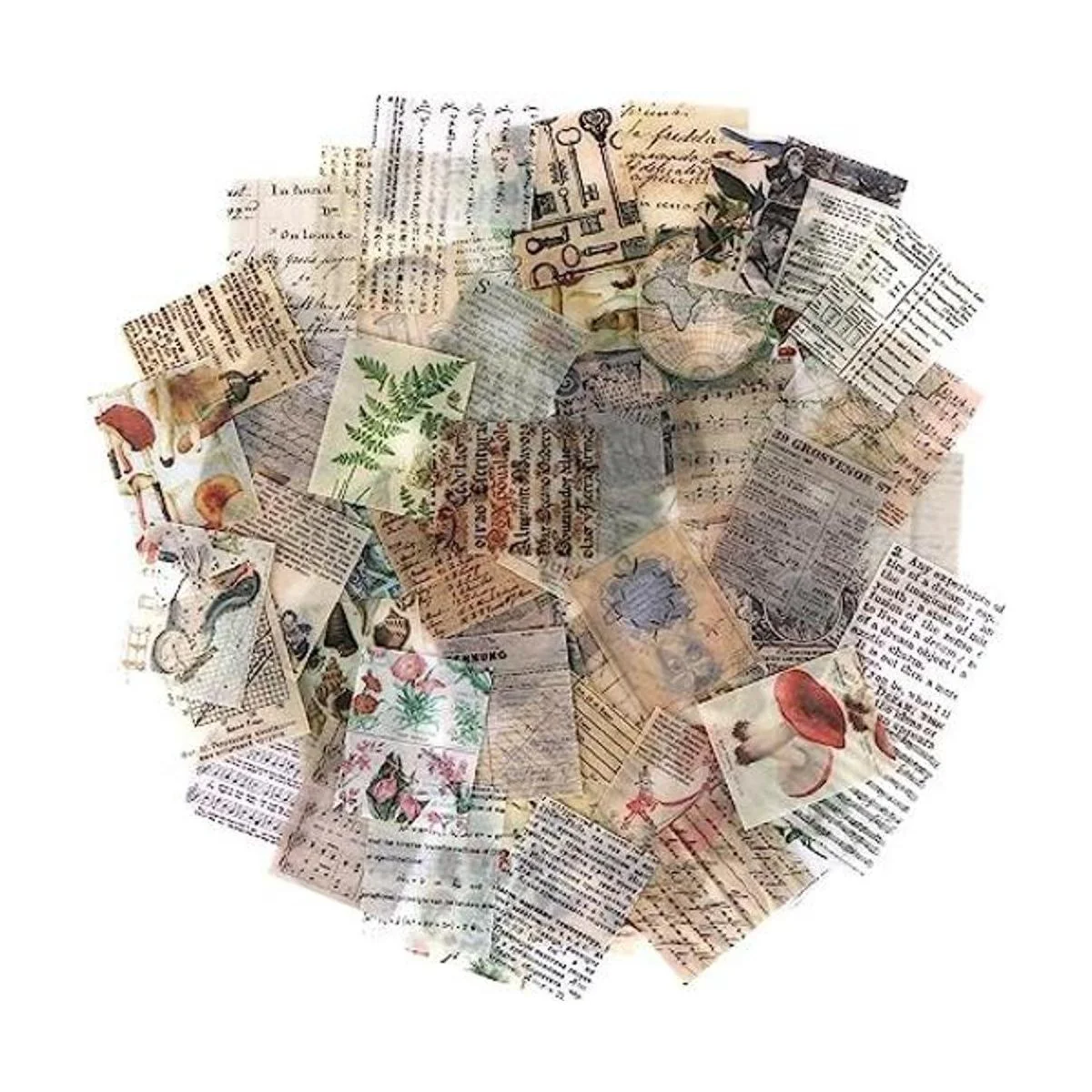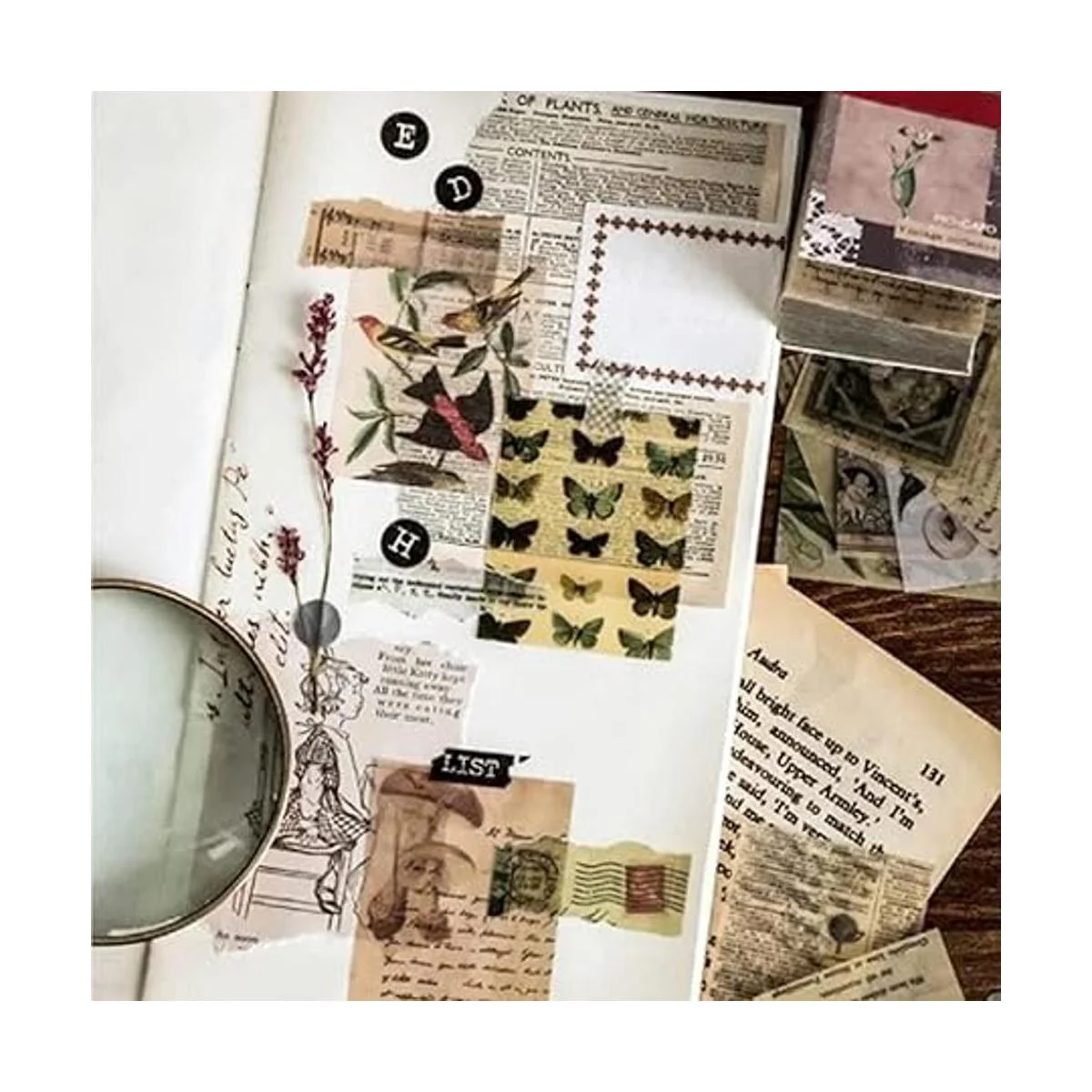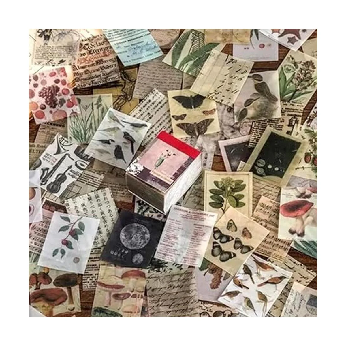 ROLEES Suministros de diario vintage para álbumes de recortes, suministros de decoración de plantas, animales, mariposas, pájaros, mapa del mundo, letras, periódico, decorativo, vintage, papel, suministros de decoración para manualidades
