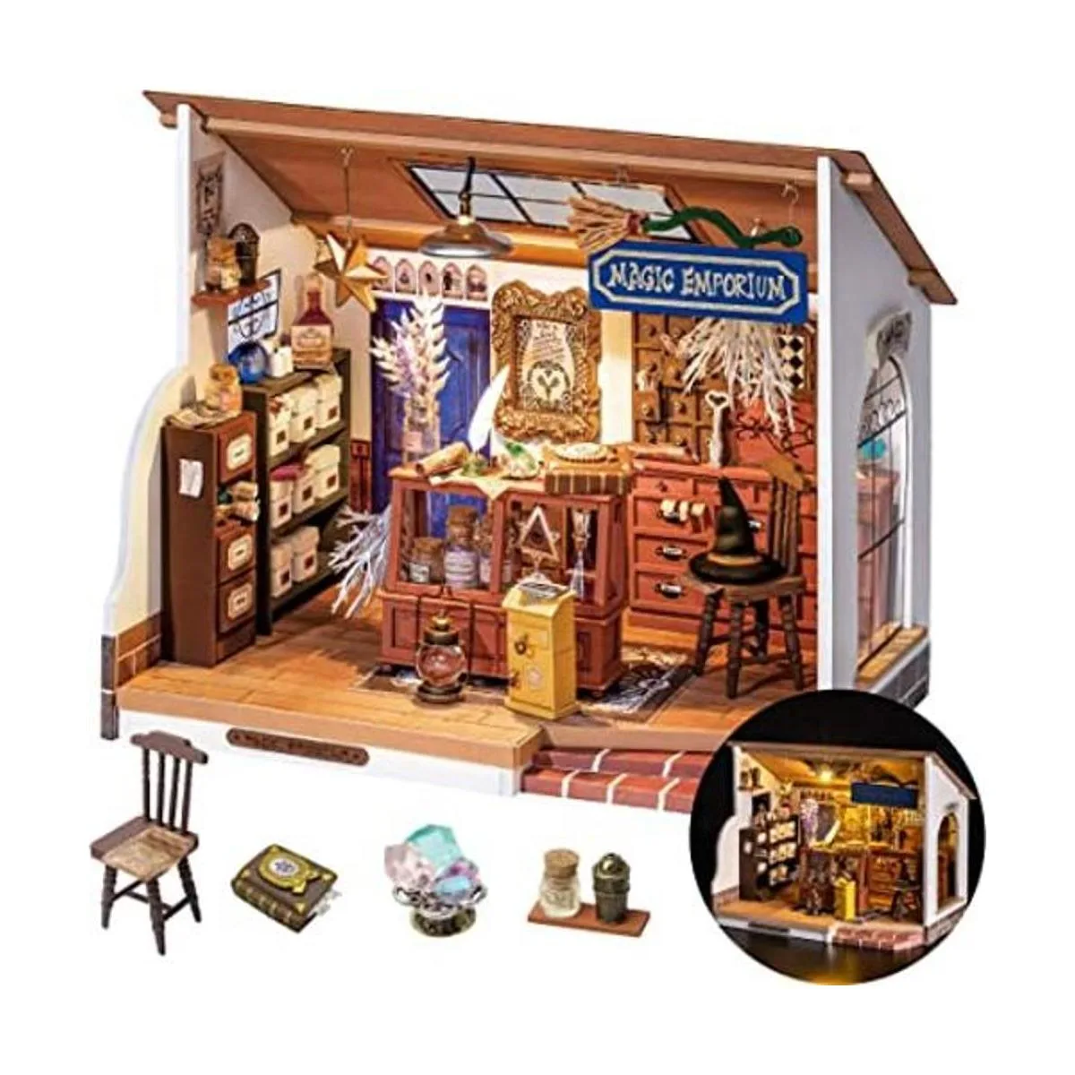 Rolife Kit de casa de muñecas en miniatura, kit de casa en miniatura, juegos de construcción de modelos de casa pequeña, regalos de manualidades para adultos para construir, regalos de decoración de Navidad para familiares y amigos Emporio mágico de Kiki