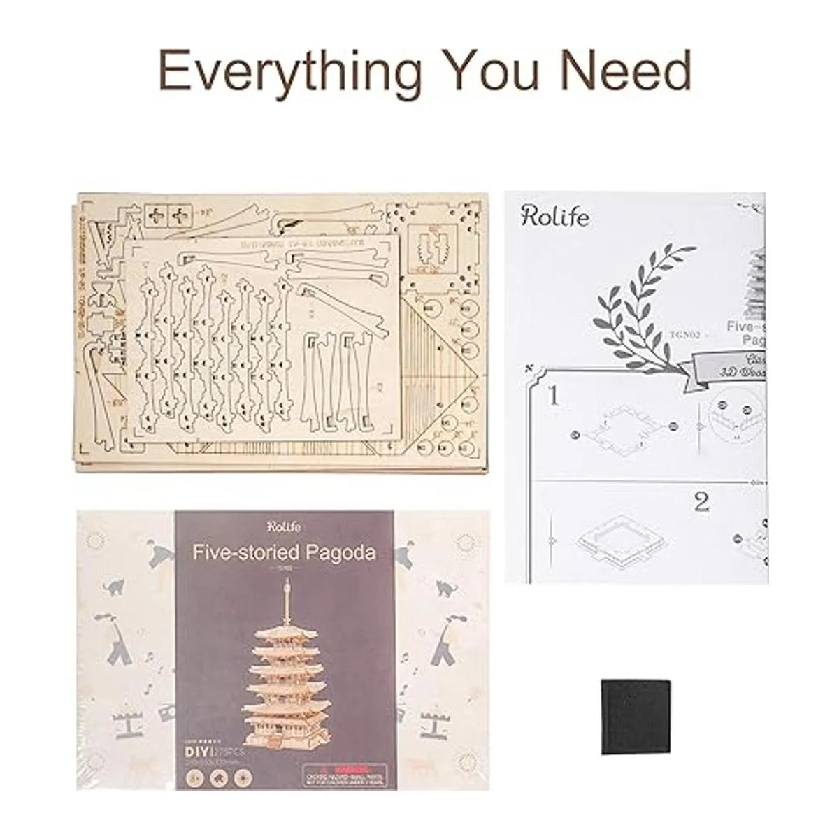 Rolife Kits de modelos de madera para adultos para construir rompecabezas 3D DIY de cinco pisos pagoda regalos únicos para amigos o familiares