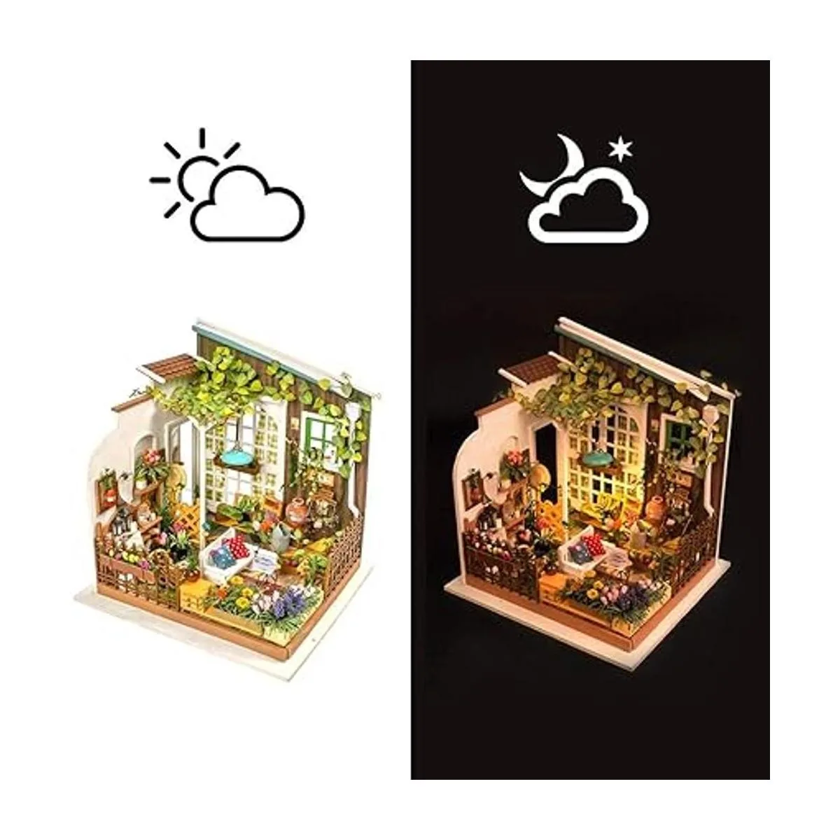 Rolife Set de manualidades para construir casa de muñecas en miniatura, casa de hadas con jardín, juego de rompecabezas de madera 3D, decoración para el hogar, cumpleaños únicos, día de la madre, para niños, niñas, amigos, madres y mujeres 08 jardín