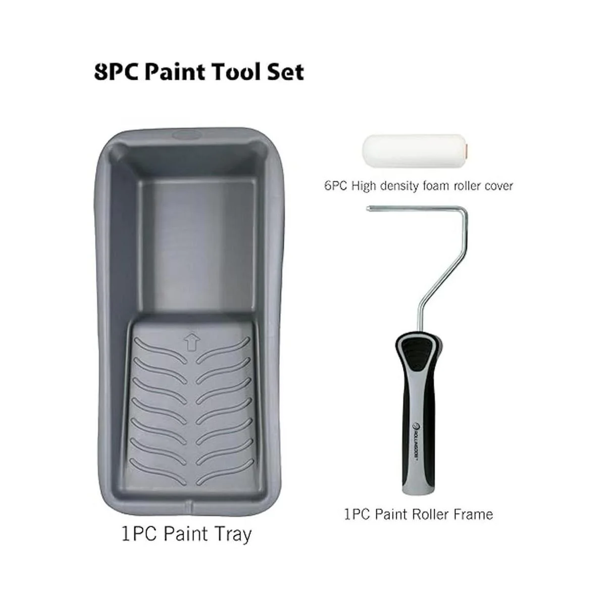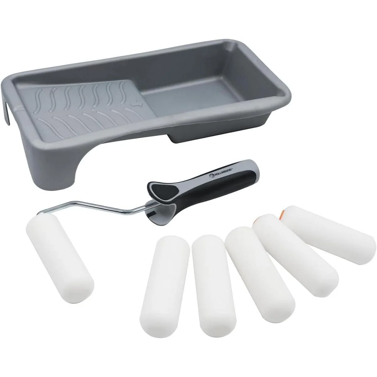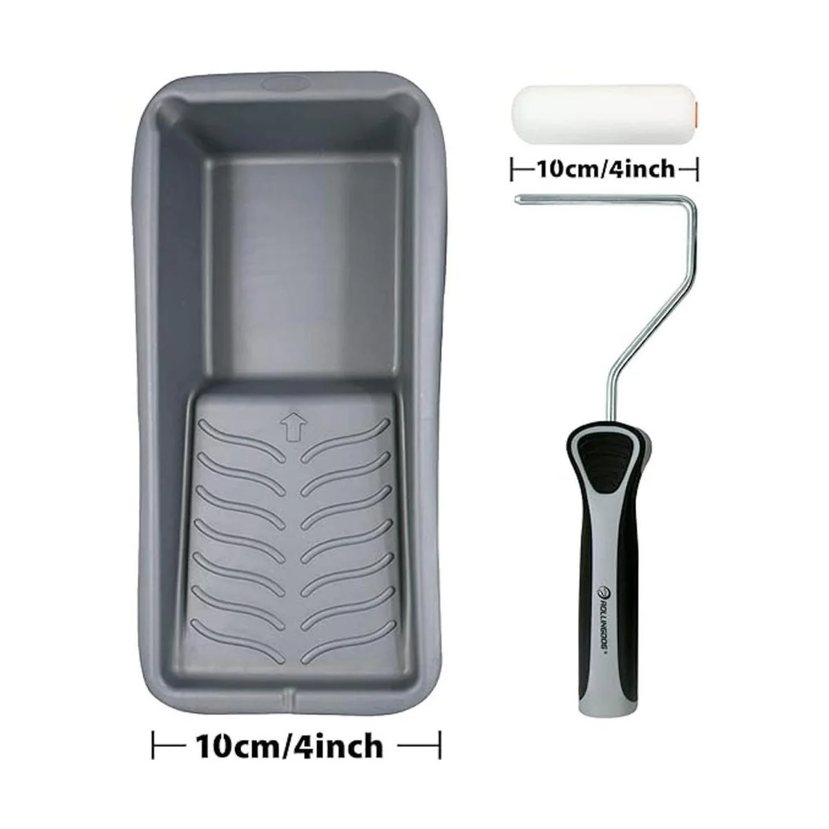 ROLLINGDOG Juego de 8 herramientas de pintura que incluye cubierta de rodillo de espuma de alta densidad de 4 pulgadas, marco de rodillo de pintura de 4 pulgadas, bandeja de pintura de 4 pulgadas, el rodillo de pintura de 4 pulgadas es perfecto para cortar en bordes y bordes