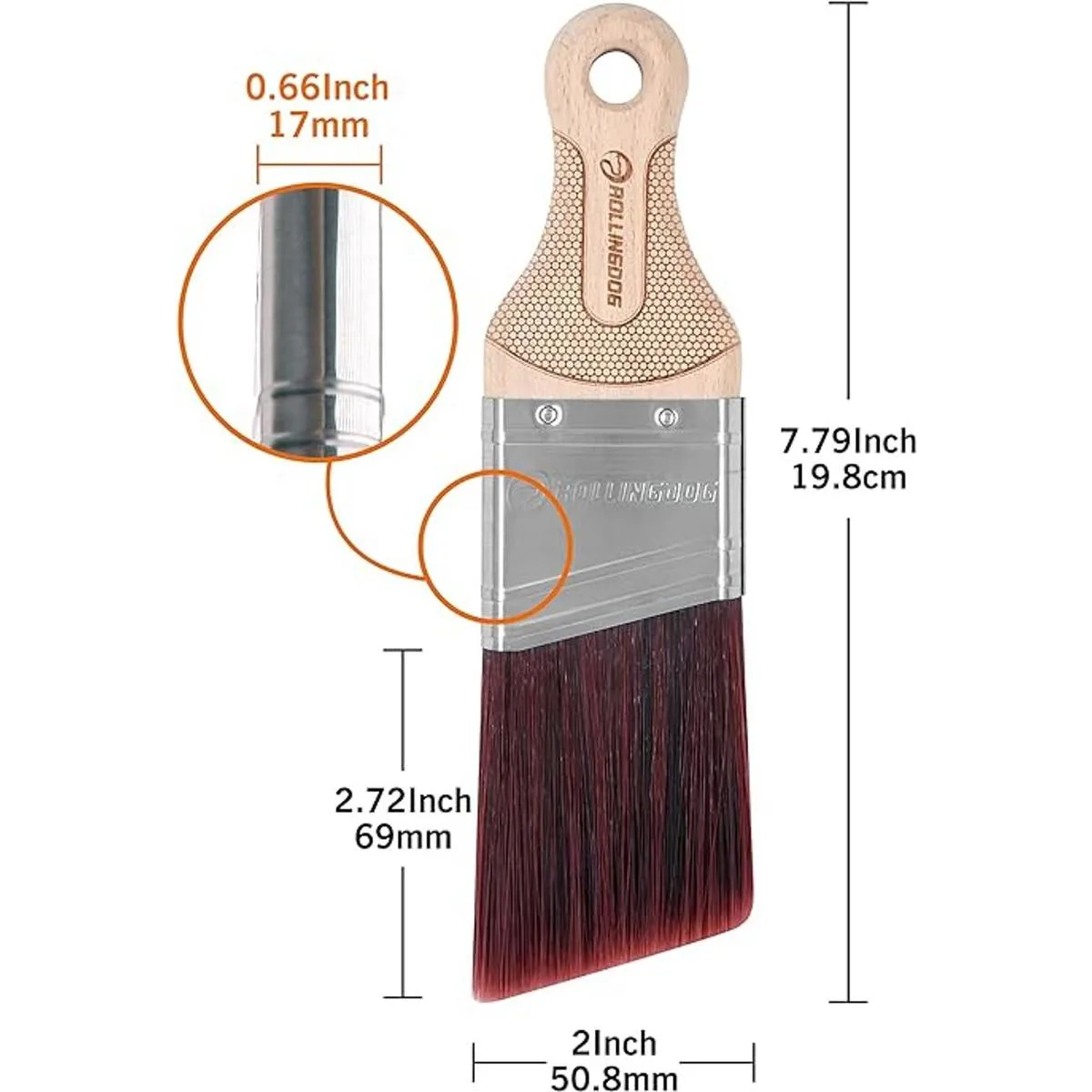 ROLLINGDOG Pincel de pintura en ángulo de 2 pulgadas con mango corto ergonómico para pared, muebles, corte, recorte, pintura de detalles