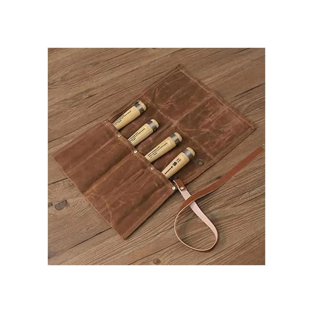 Rollo de cincel, bolsa de herramientas de lona encerada, bolsa enrollable, funda de transporte de cincel, bolsa de soporte para llaves, organizador de 4 bolsillos para martillos de cuchillos, gubias, el mejor regalo para electricista, carpintero o mecánico