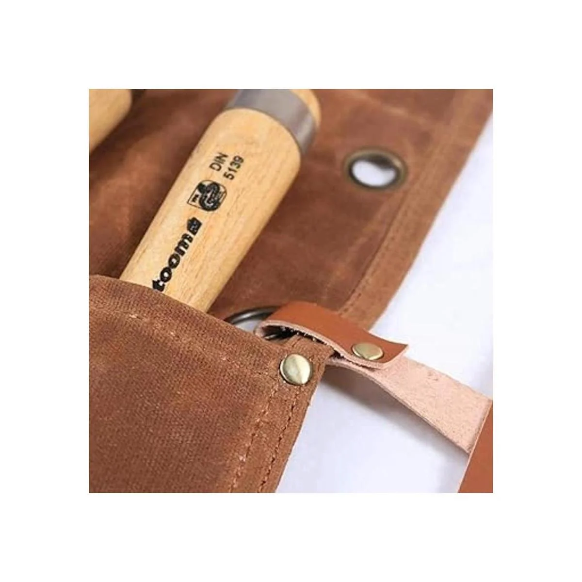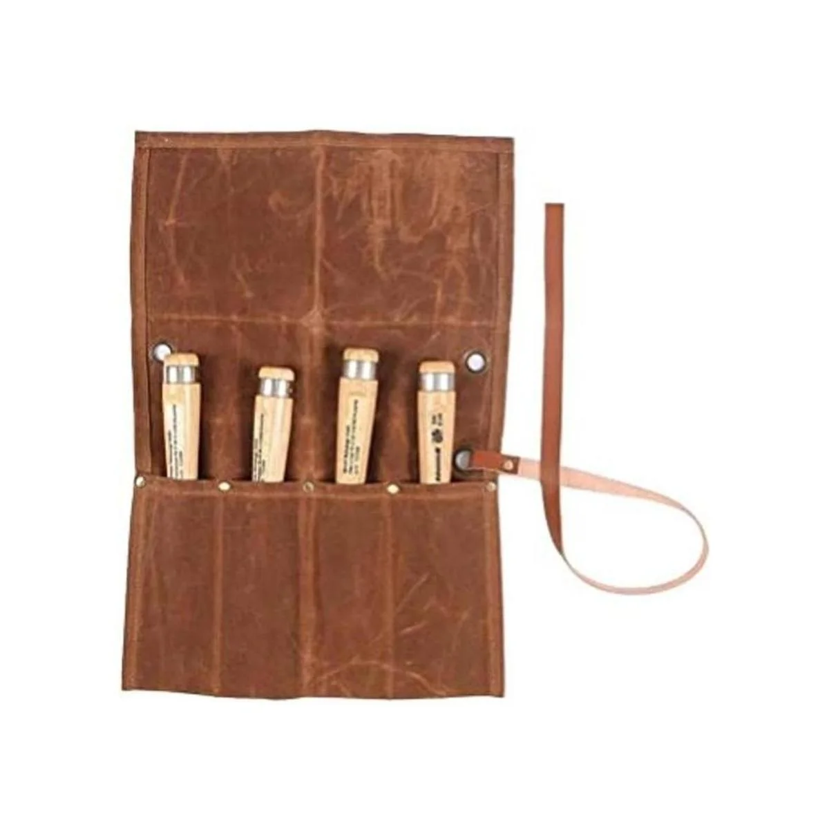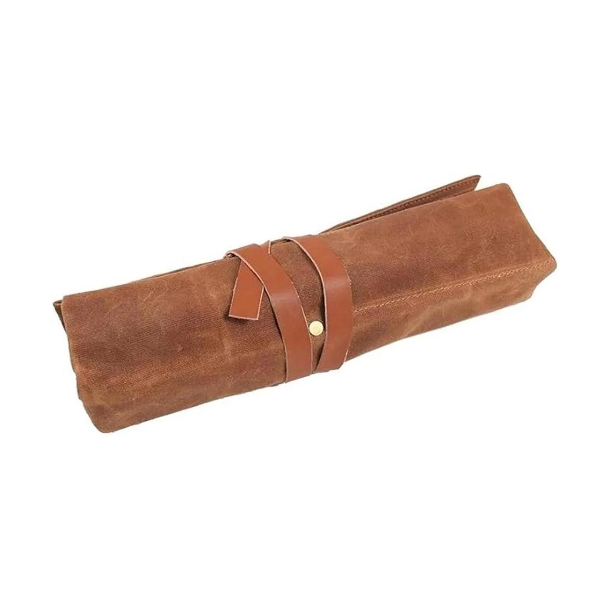 Soporte de cincel fácil de almacenar: se enrolla para un fácil almacenamiento y transporte, cordón de cuero para un cierre seguro.