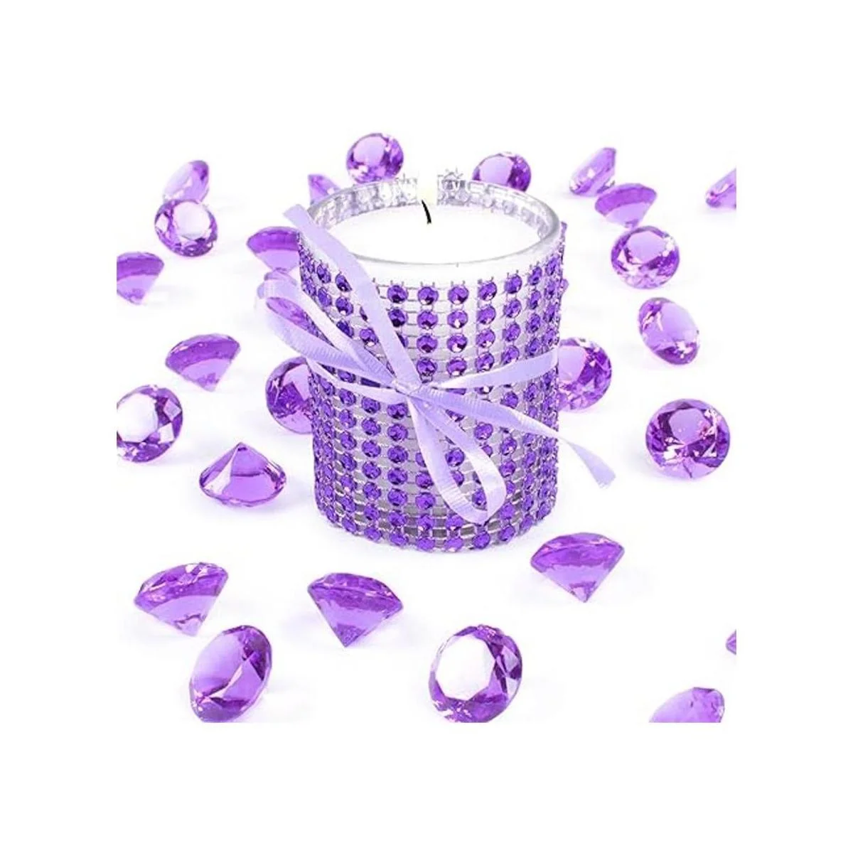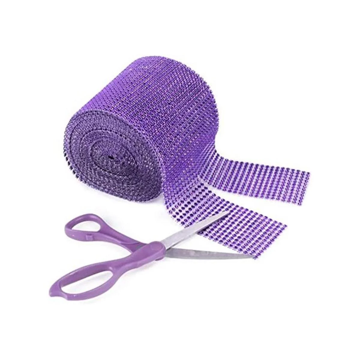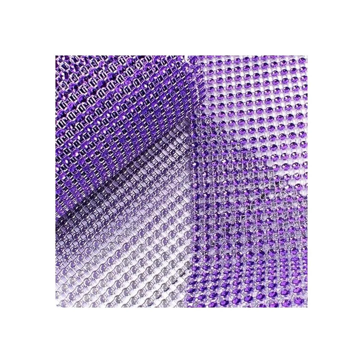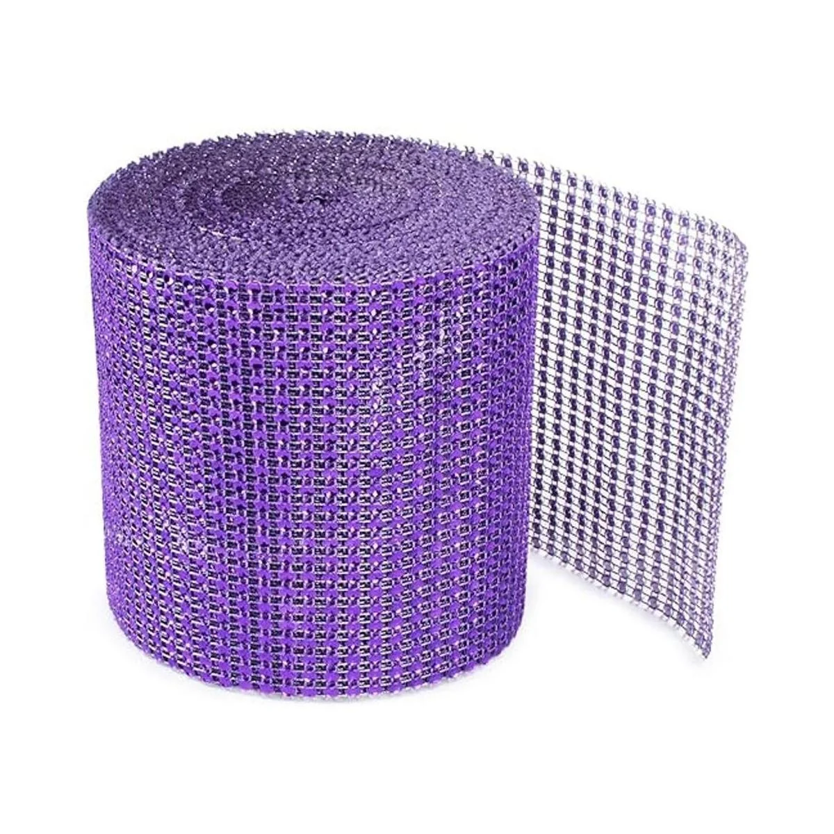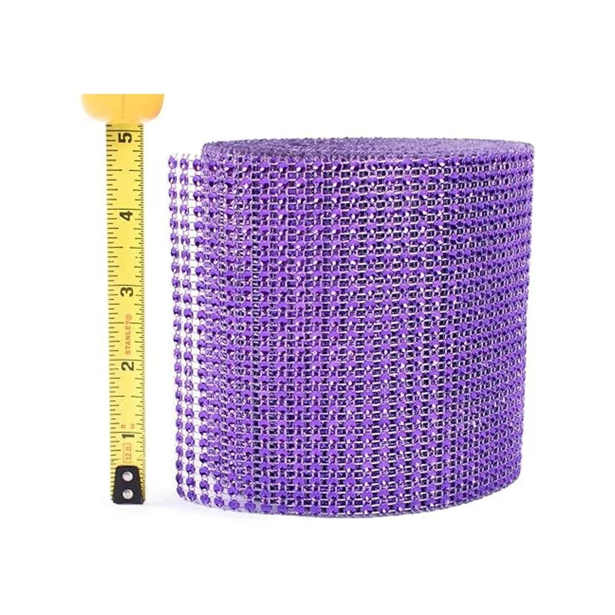 Rollo de cinta de malla para decoración de artes y manualidades con diamantes de imitación, color morado (4.75 x 10 yardas, 24 filas, 1 rollo)