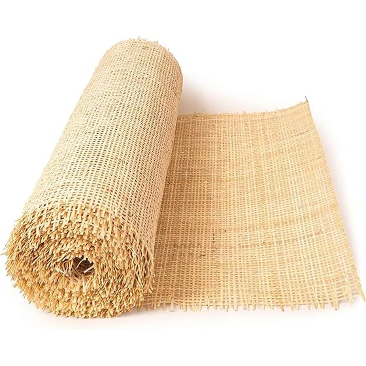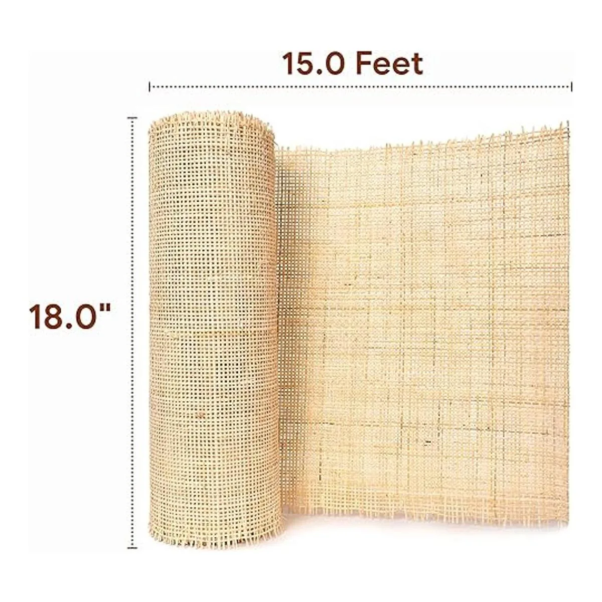 Rollo de correas de caña de ratán cuadrado de 18 pulgadas de ancho, 15 pies para proyectos de bastón de ratán fino malla de red de radio pretejida hoja de correas de bastón de ratán natural para silla de gabinete 15 pies