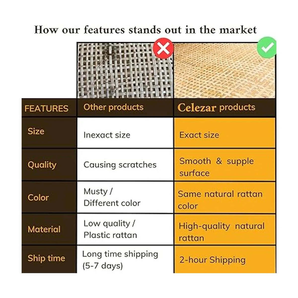 100 fibra de ratán natural, la intensidad de nuestros colores de cincha de ratán no se desvanece ni se degradará fácilmente.