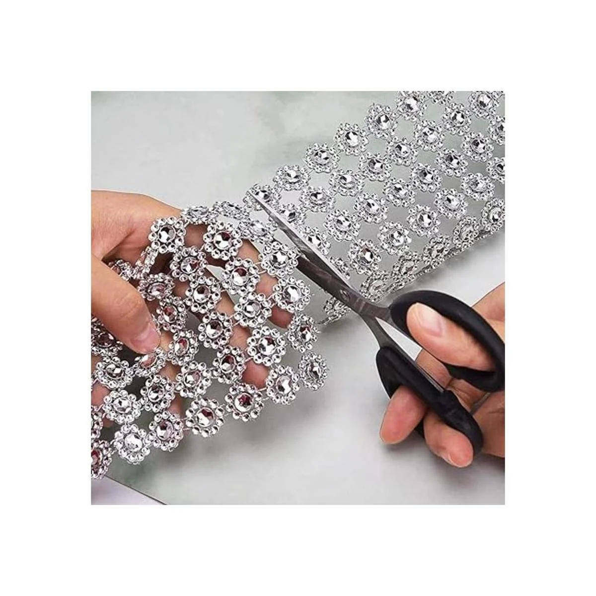 Fácil de usar y cortar: la cinta de diamantes de imitación está unida por una rejilla de malla, que se puede cortar fácilmente con tijeras para una fácil personalización. Puedes cortar esta cinta en cualquier tamaño de pieza largo o ancho.