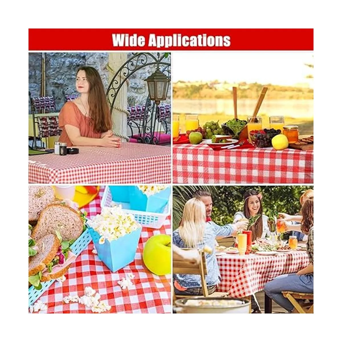 Amplias aplicaciones: este mantel de plástico es esencial para fiestas, picnic, almuerzo, cena, banquete, cumpleaños, eventos y otras celebraciones, también es bueno para camping, viajes por carretera y proyectos de bricolaje o manualidades, adecuado para fiestas en interiores y exteriores, lo que te brinda una experiencia diferente y aumenta el ambiente de placer