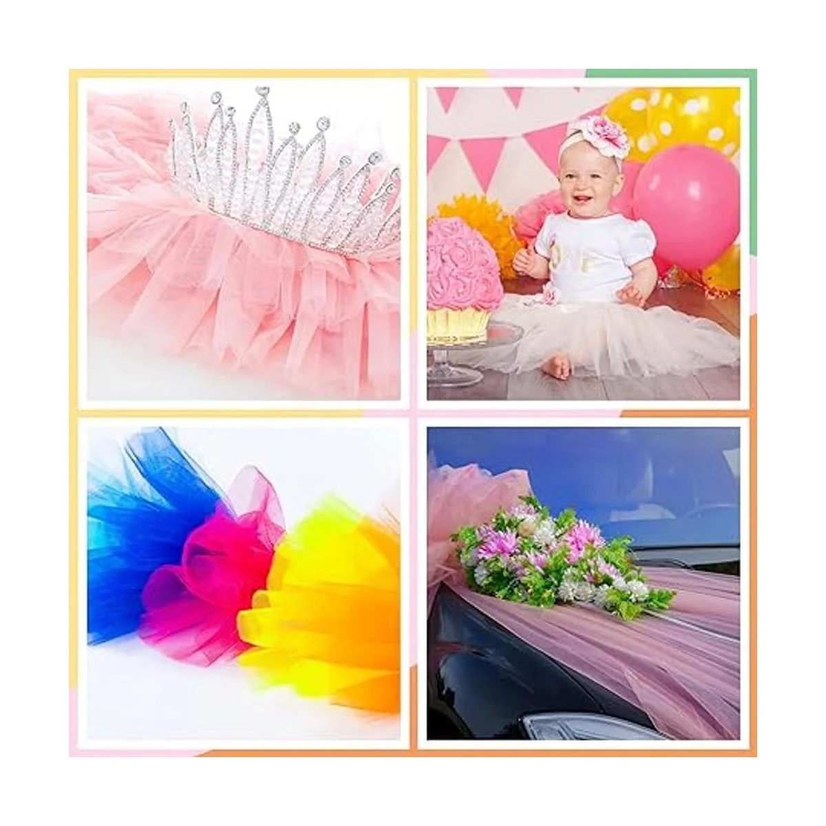 Dimensiones del tamaño: la medida del carrete de tela de tul es de aproximadamente 6 pulgadas de ancho, 25 yardas de largo, la longitud total de 20 rollos es de 500 yardas, lo que es lo suficientemente larga para que lo utilices, también puedes cortar el tul al tamaño adecuado, aportando mucha comodidad a tu vida