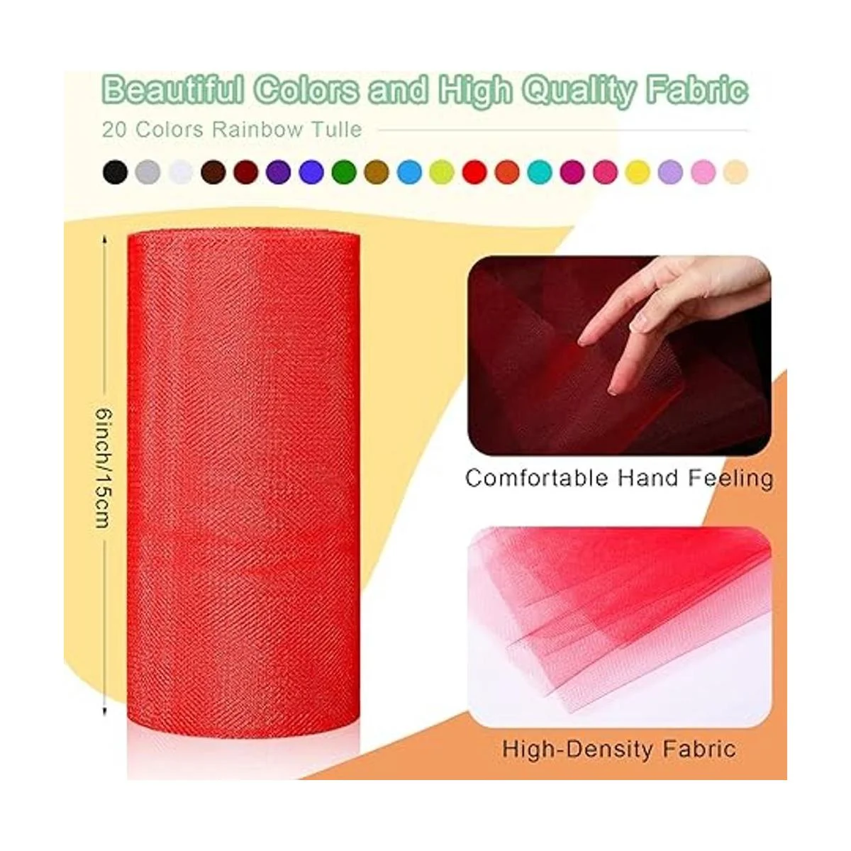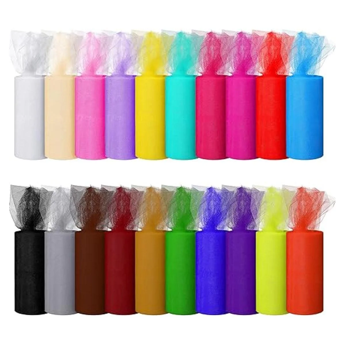 Rollo de tul arcoíris de 20 colores de 6 pulgadas por 25 yardas, carrete de tela de tul, cinta de red, carrete de tela, cinta de malla, suministros de manualidades para tutus, bodas, fiestas, vestido de falda
