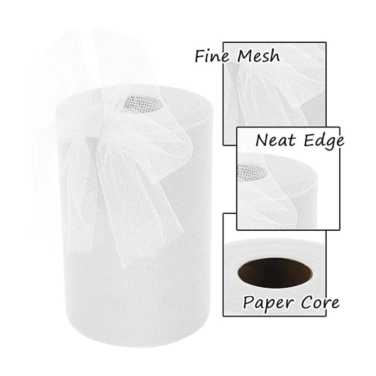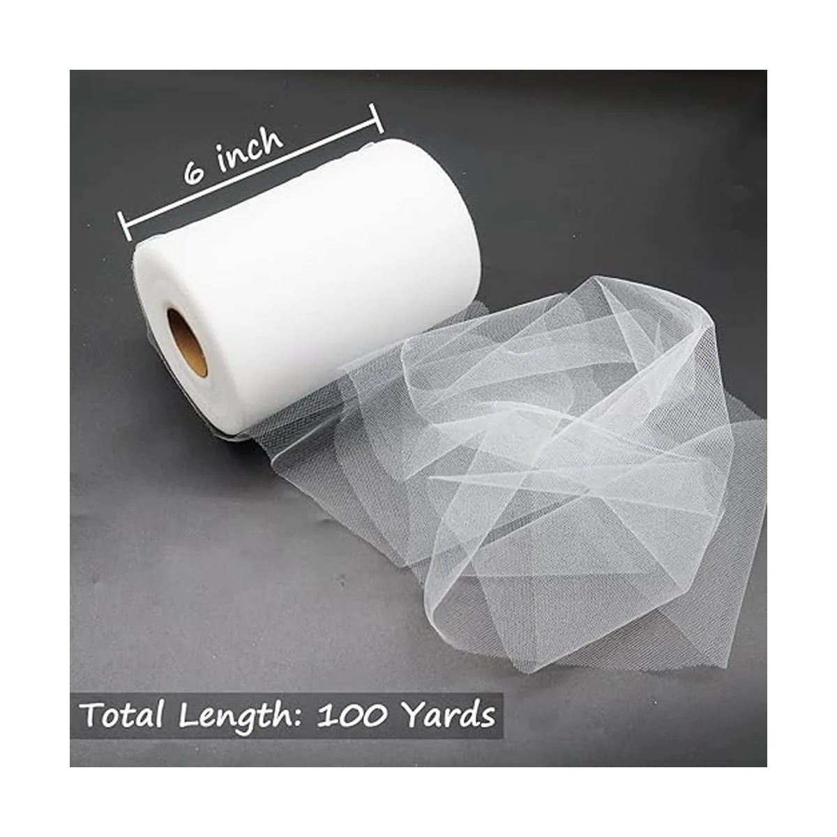 Rollos de tela de tul de 6 pulgadas por 100 yardas 300 pies carrete de cinta de tul blanco para falda tutú, boda, baby shower, decoración de fiesta de cumpleaños, envoltura de regalos de Navidad, manualidades de bricolaje blanco