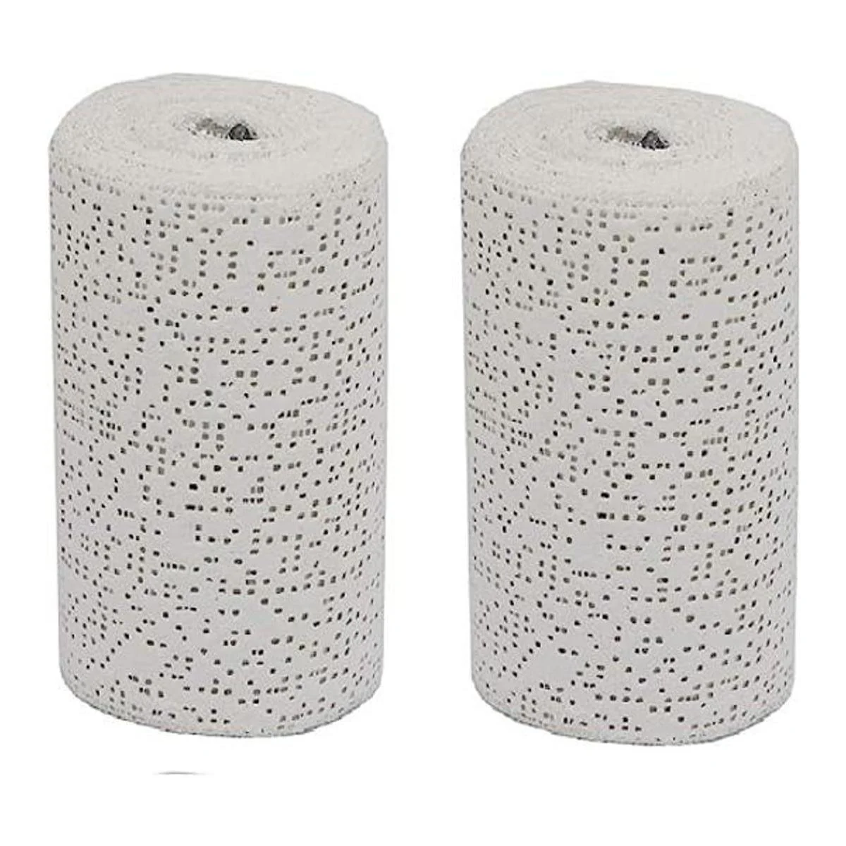 Incluye 2 rollos de tela de yeso blanco, envueltos individualmente en un paquete impermeable.