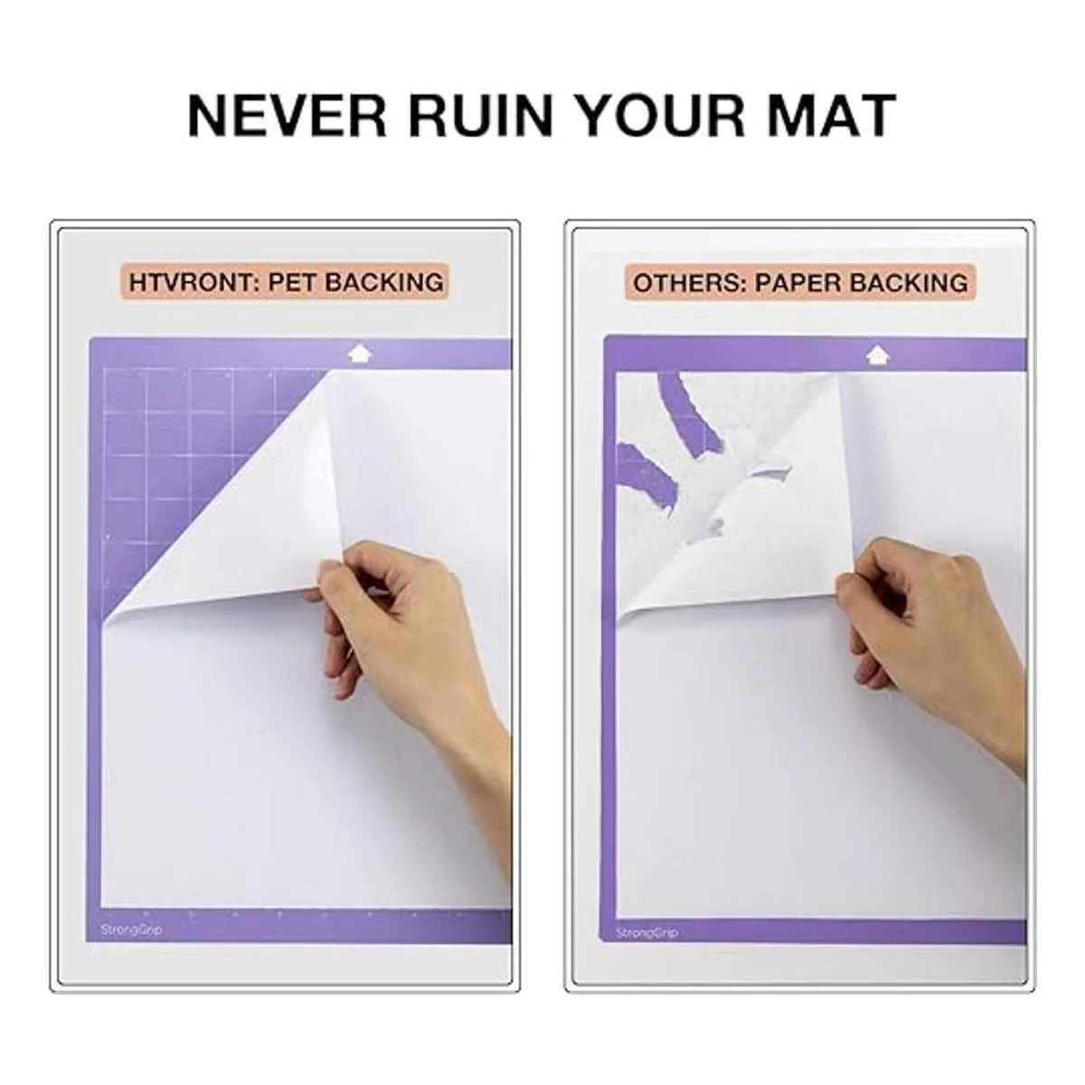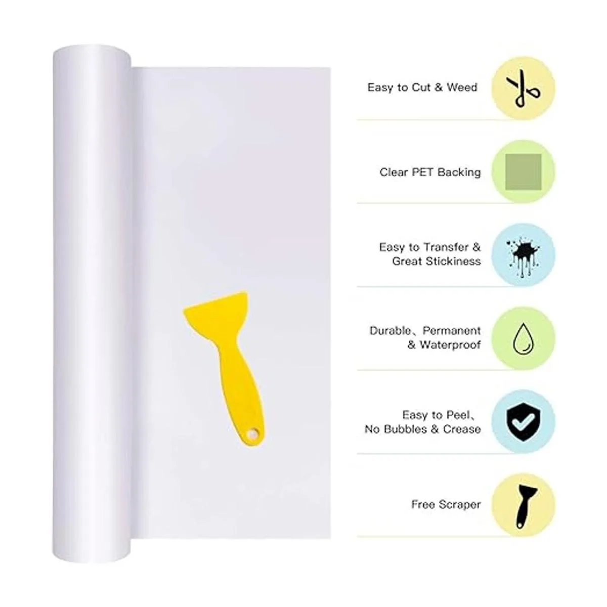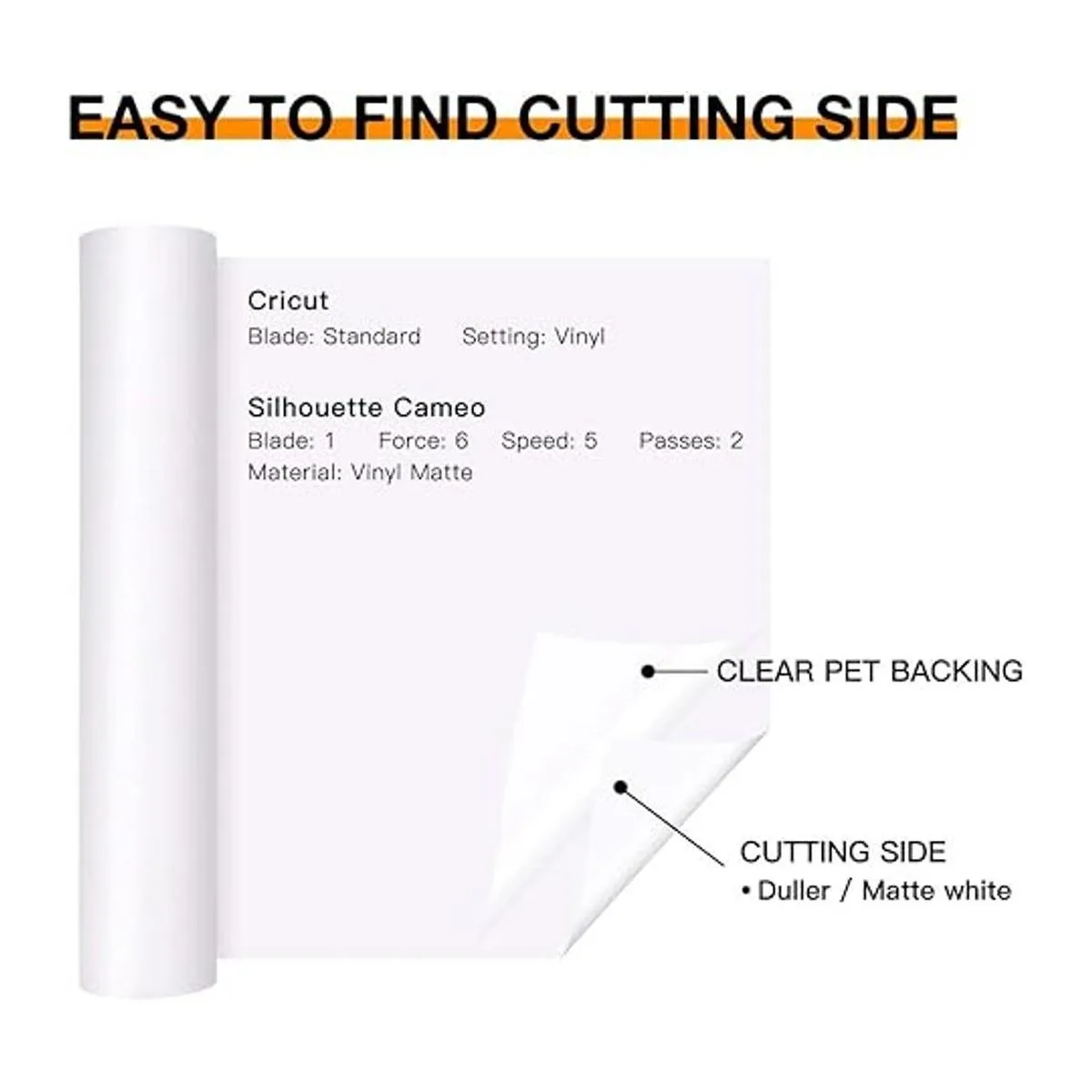 Respaldo de PET transparente: di adiós a la parte trasera de papel, que se adhiere a la alfombrilla y arruina tu diseño. Utilizando nuestro vinilo permanente blanco con respaldo de PET, no tendrás que limpiar tu alfombrilla y preocuparte por daños en el proyecto. No más papel barato que arruine y separe del vinilo blanco en el proceso de corte. Nuestro respaldo de PET es la mejor respuesta a tus problemas.
