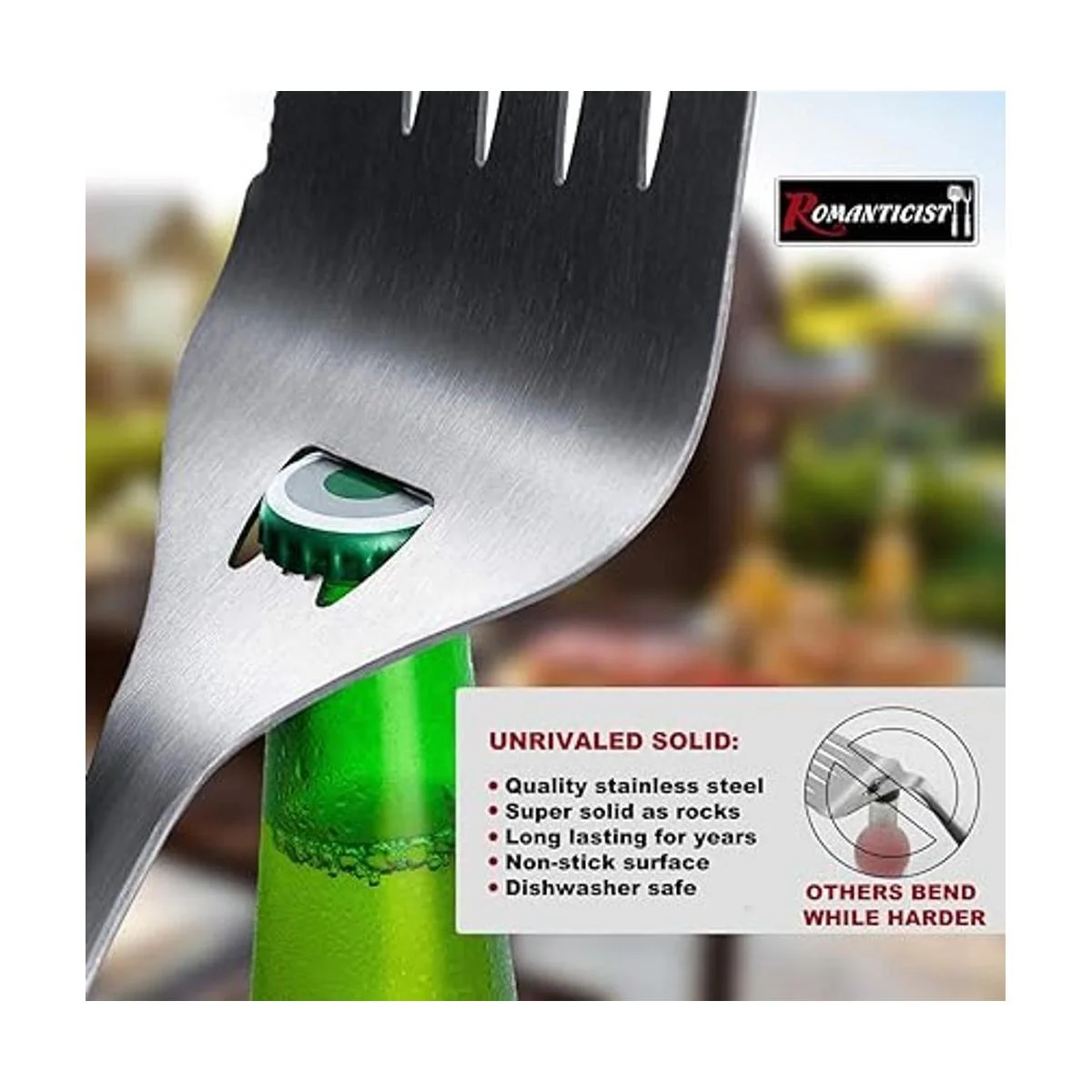 ROMANTICIST 6 accesorios de alta resistencia de parrilla para chef – Juego de herramientas profesionales básicas de parrilla y barbacoa para patios, restaurantes, cocina al aire libre – Regalo de lujo para papá en día del padre, cumpleaños