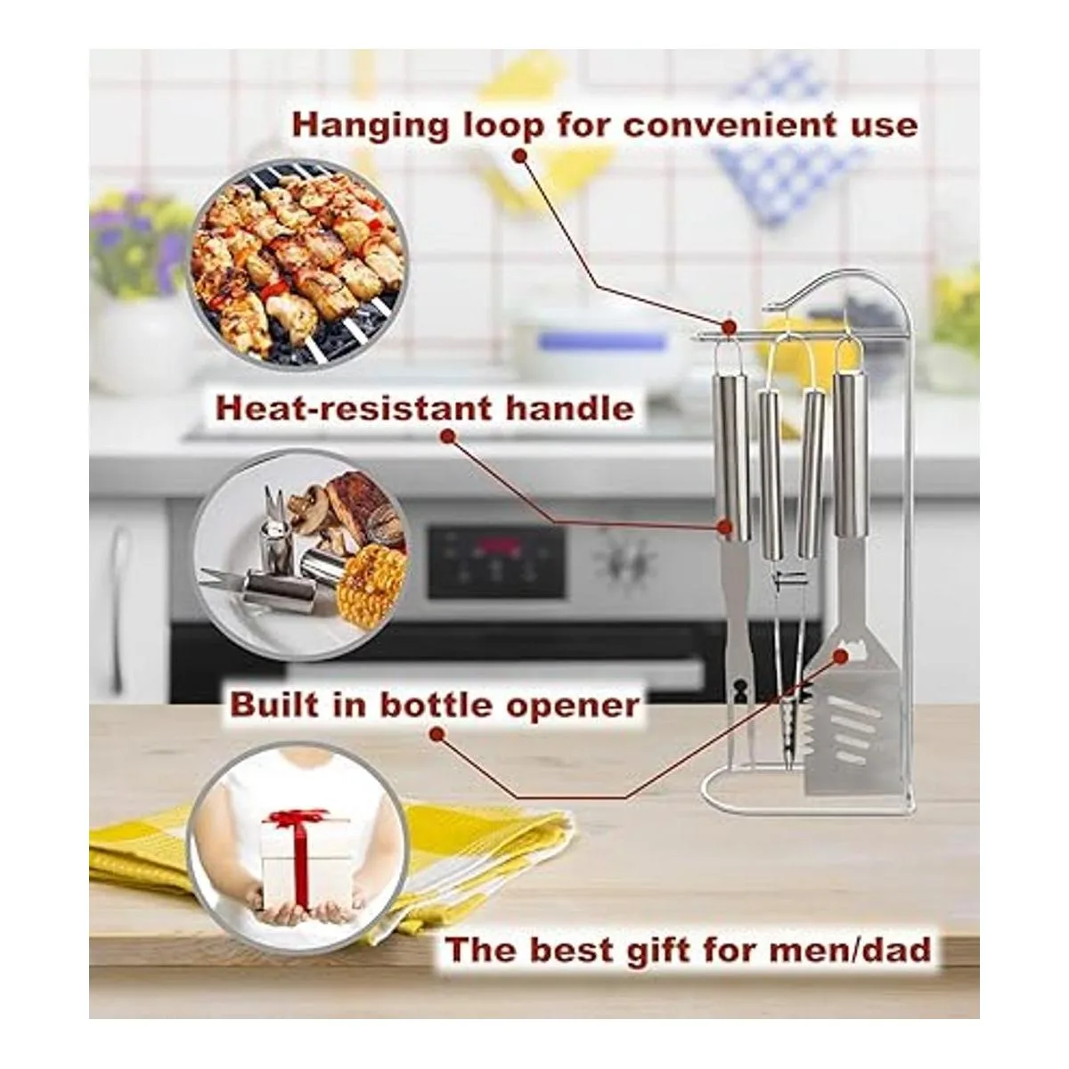 Súper fuerte y duradera: todas las herramientas de barbacoa están hechas de acero inoxidable de grado profesional que resiste el calor y resiste la prueba del tiempo.