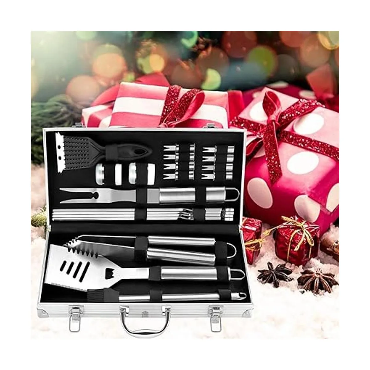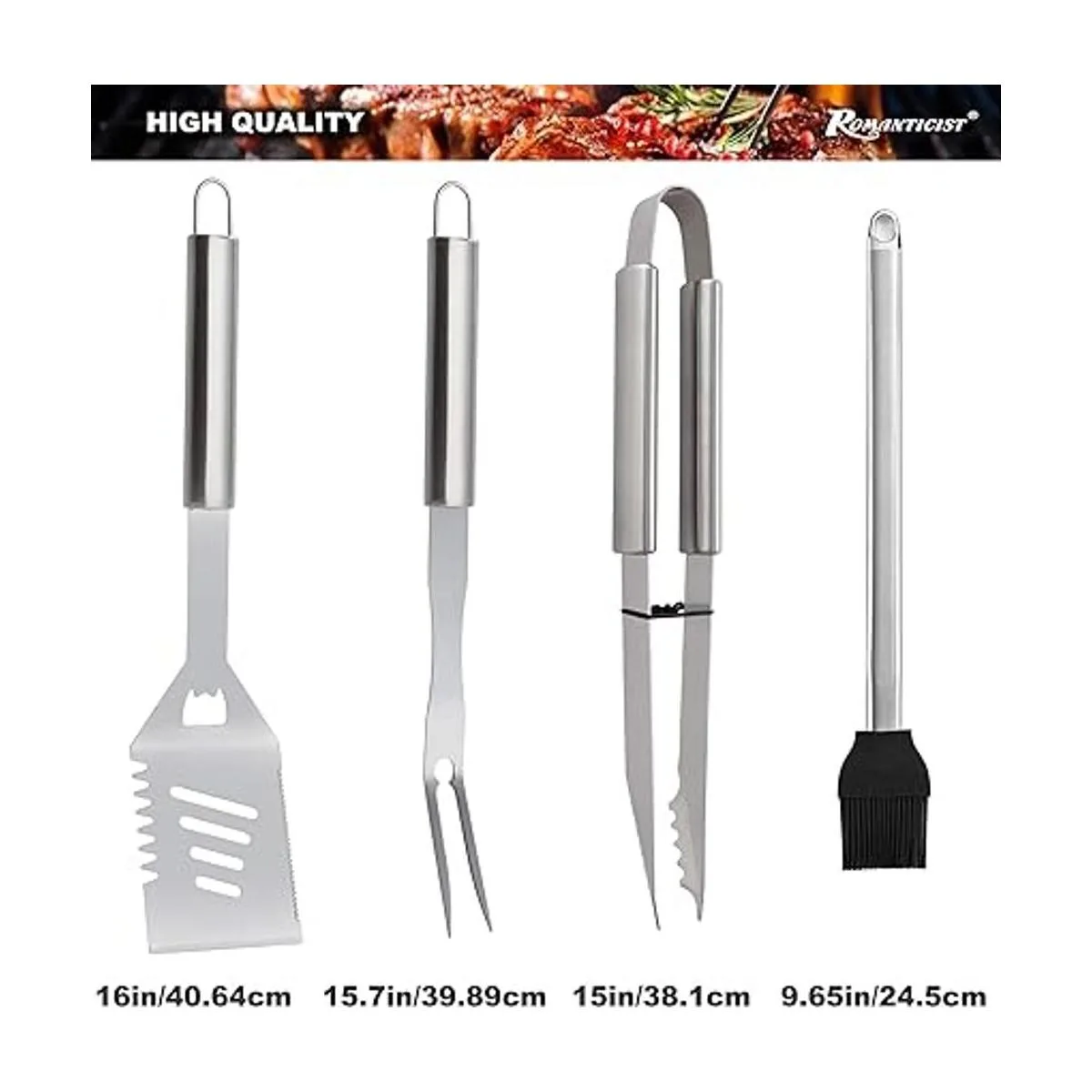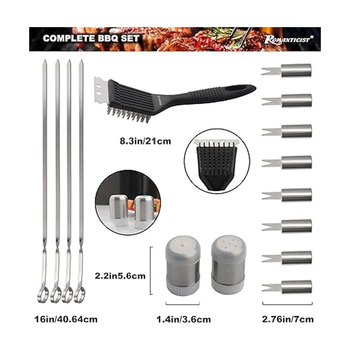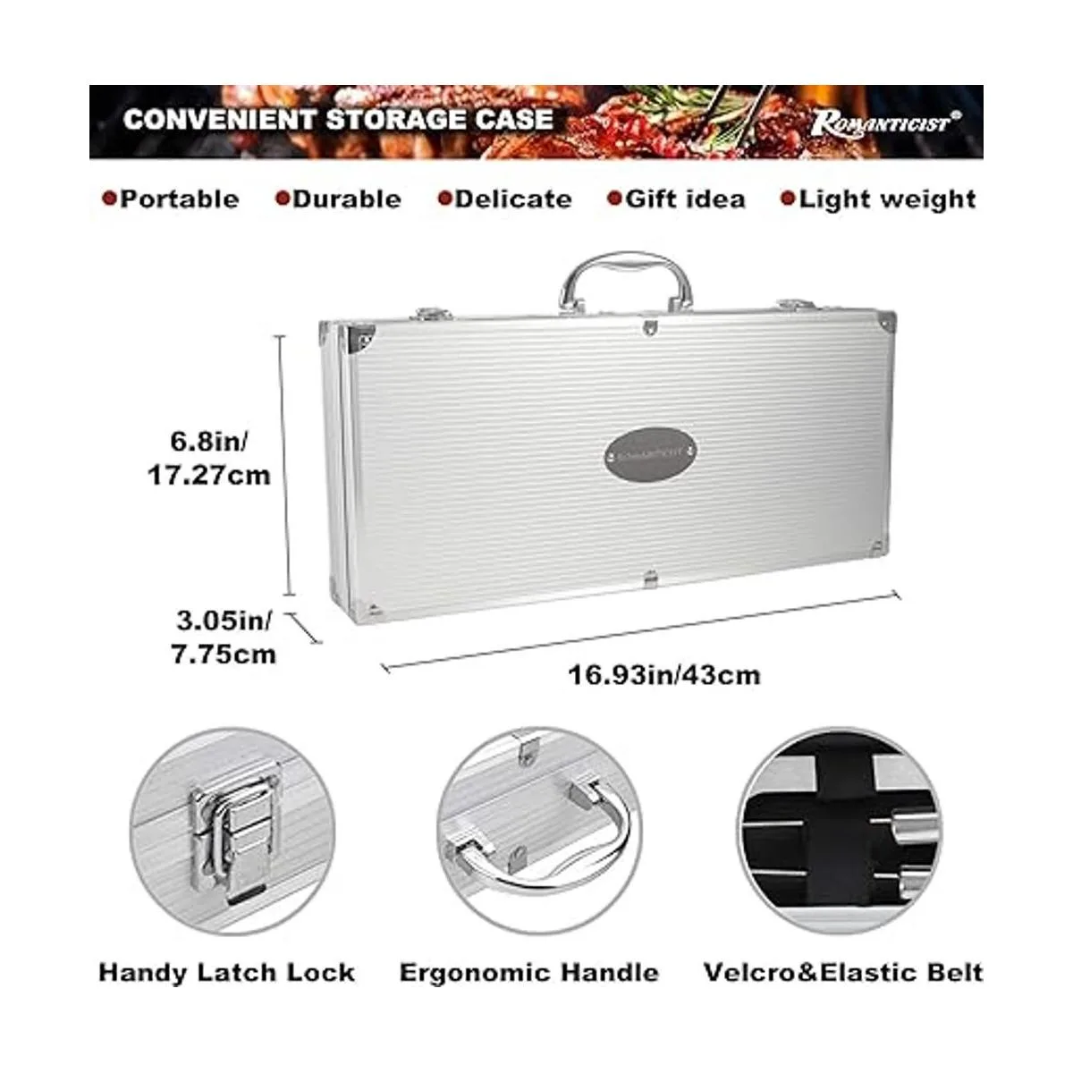ROMANTICIST Juego de 20 herramientas de parrilla de barbacoa resistentes en el estuche, el mejor regalo de parrilla en cumpleaños y boda, juego de accesorios profesionales para barbacoa para cocinar al aire libre, camping, asar, fumar