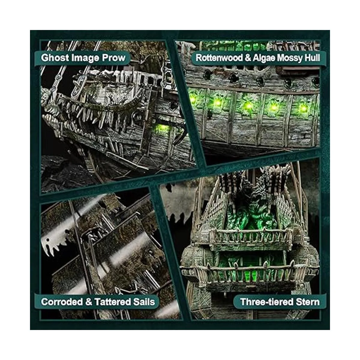 Barco fantasma con efecto de iluminación verde Incluye cuerdas de luz verde para el montaje con el rompecabezas, lo que lo convierte en una obra de arte genial para la cubierta, la oficina y el hogar y un artículo de exhibición nocturna después de completar los rompecabezas. Necesita 2 pilas AA de 1,5 V y pilas no incluidas.