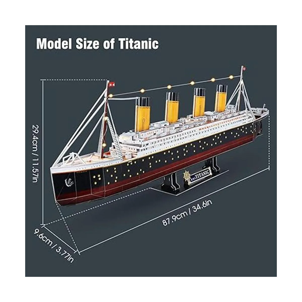 Recomendado para mayores de 14 años: este es un enorme e impresionante kit de modelo de barco Titanic para adolescentes, adultos y entusiastas náuticos. Ideal para entrenar y mejorar la estereopsis y la capacidad de manipulación de los adolescentes. 266 piezas en total y miden 34.6 pulgadas de largo después de terminar el rompecabezas.