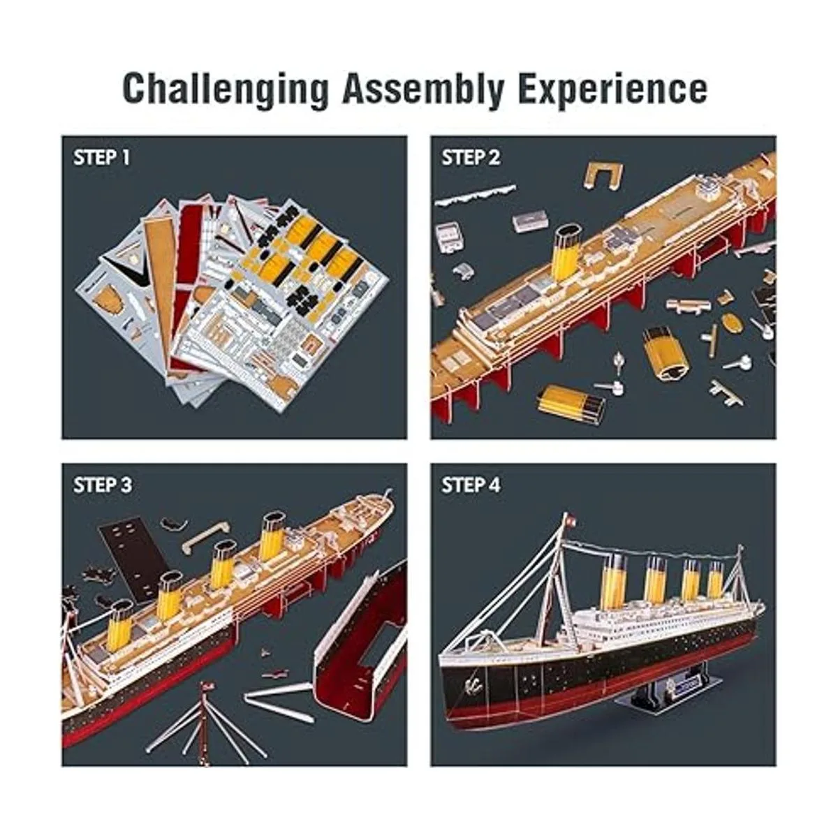 Abundantes detalles y artesanía de calidad: pintura meticulosa para que coincida con precisión con el Titanic real. El papel precortado y las piezas de rompecabezas de tablero de espuma hacen que sea fácil de sacar para montar y encajar perfectamente. Son rígidas, duraderas y fáciles de montar. No necesitas herramientas ni pegamento.