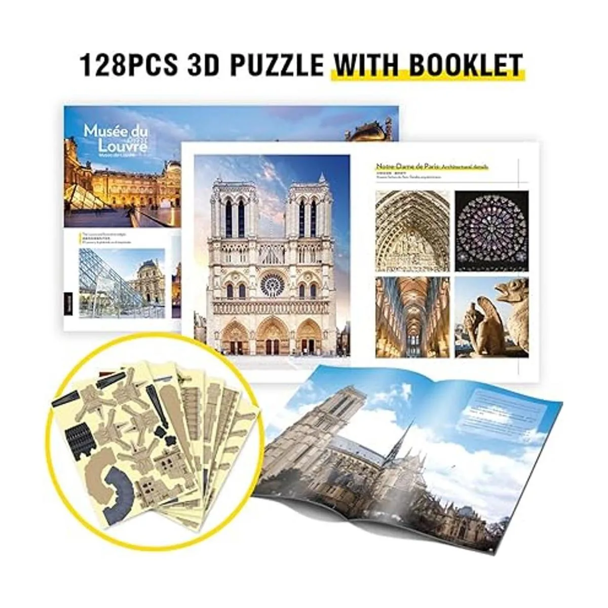 Rompecabezas 3D para adultos y niños de 8 a 10 años de edad, regalos de arquitectura de Notre Dame de París, proyectos STEM para niños de 8 a 12 años, rompecabezas de juguete navideño, 128 piezas