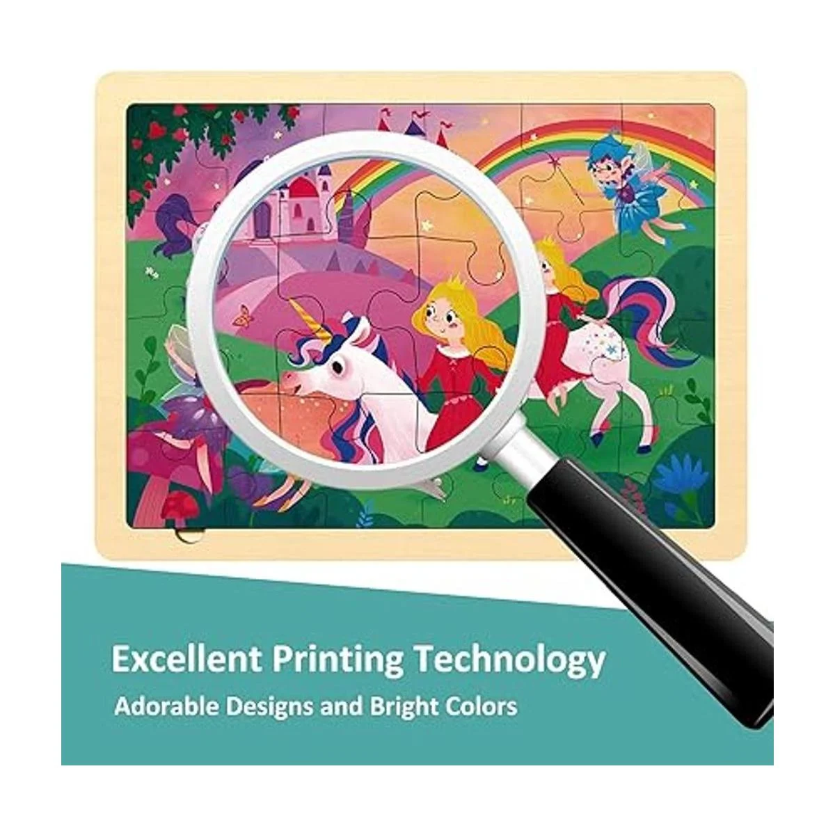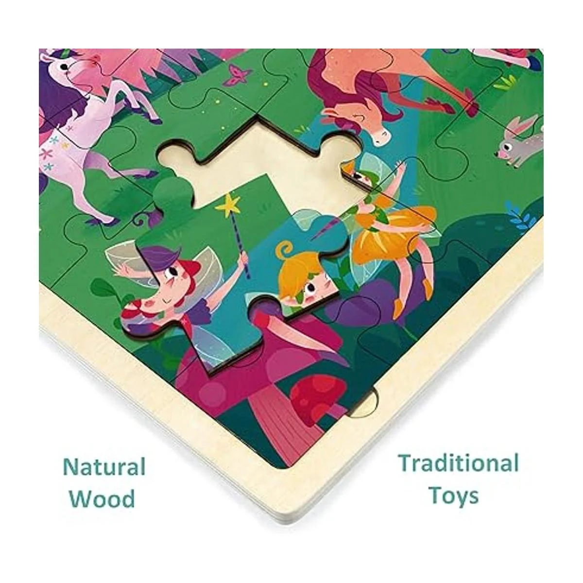 Rompecabezas de 24 piezas para niños de 3 años, piezas de rompecabezas de forma única, princesa de hadas, rompecabezas de madera para niños pequeños, rompecabezas preescolares para niñas de 3, 4, 5 años con bandeja de rompecabezas de madera y bolsa de almacenamiento