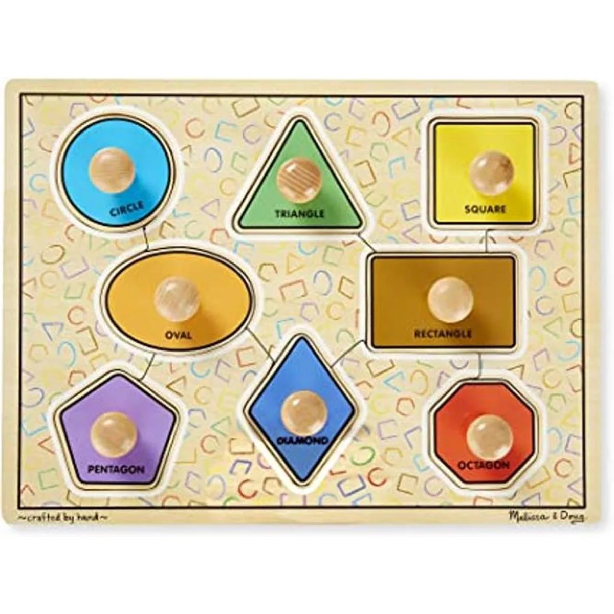 Rompecabezas de formas grandes con asas grandes, de madera, Melissa Doug 8 piezas