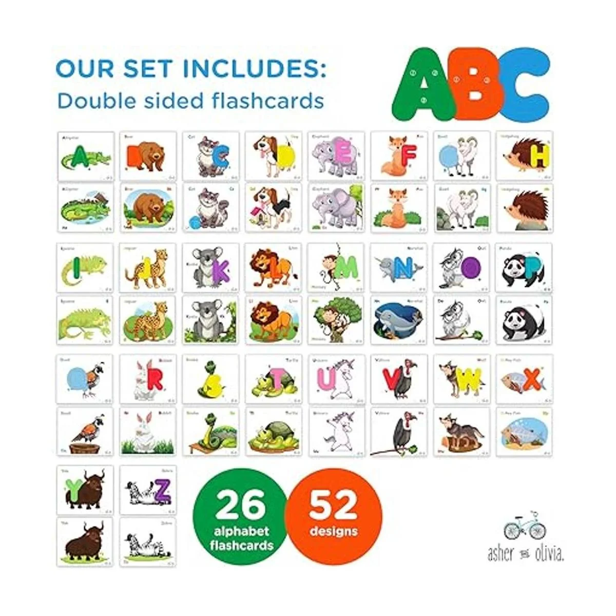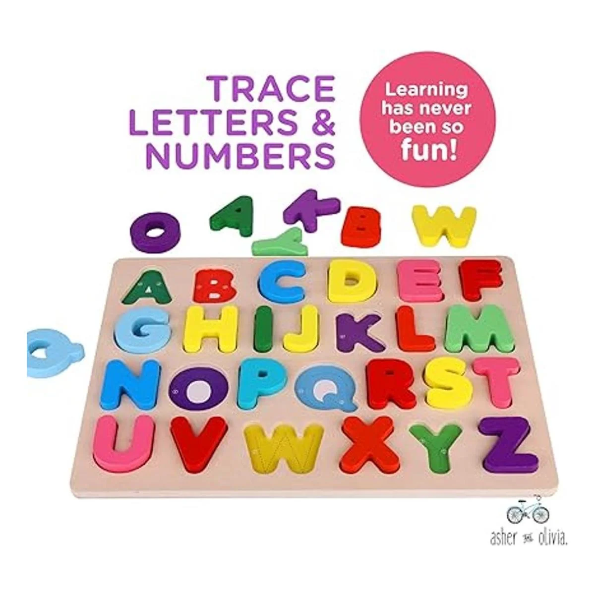 Juego de actividades de aprendizaje para niños: el juego de aprendizaje del alfabeto todo incluido de Asher Olivia incluye 1 rompecabezas de alfabeto de madera, 1 rompecabezas de números para niños, 26 tarjetas flash del alfabeto de doble cara con 52 diseños, 20 tarjetas flash de números de doble cara con 40 diseños y una bolsa de almacenamiento para mantener tus tarjetas flash para niños perfectamente organizadas; cada uno de nuestros juegos de aprendizaje ABC para niños pequeños crece con tu pequeño como mejoran su cognición habilidades de matemáticas y lectura