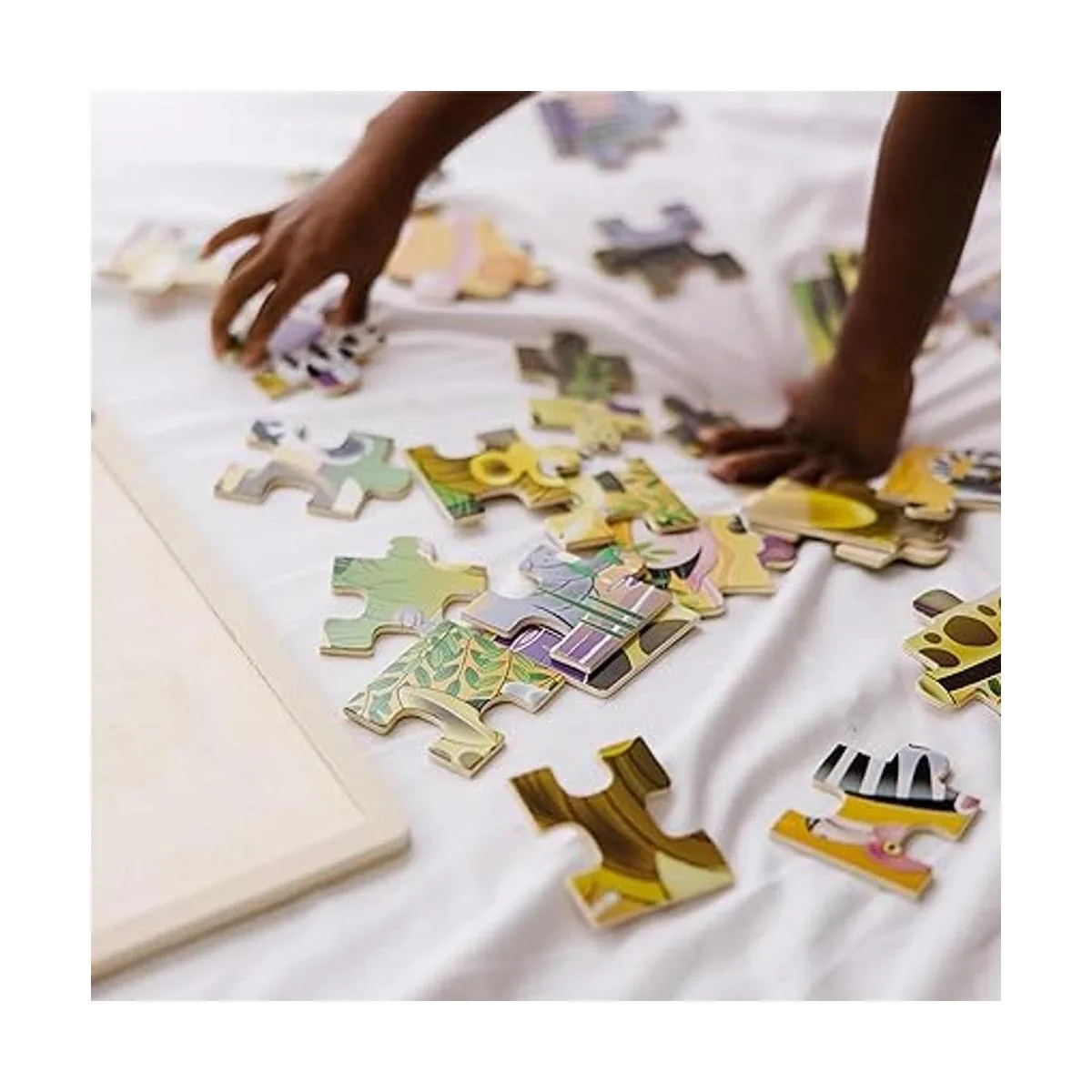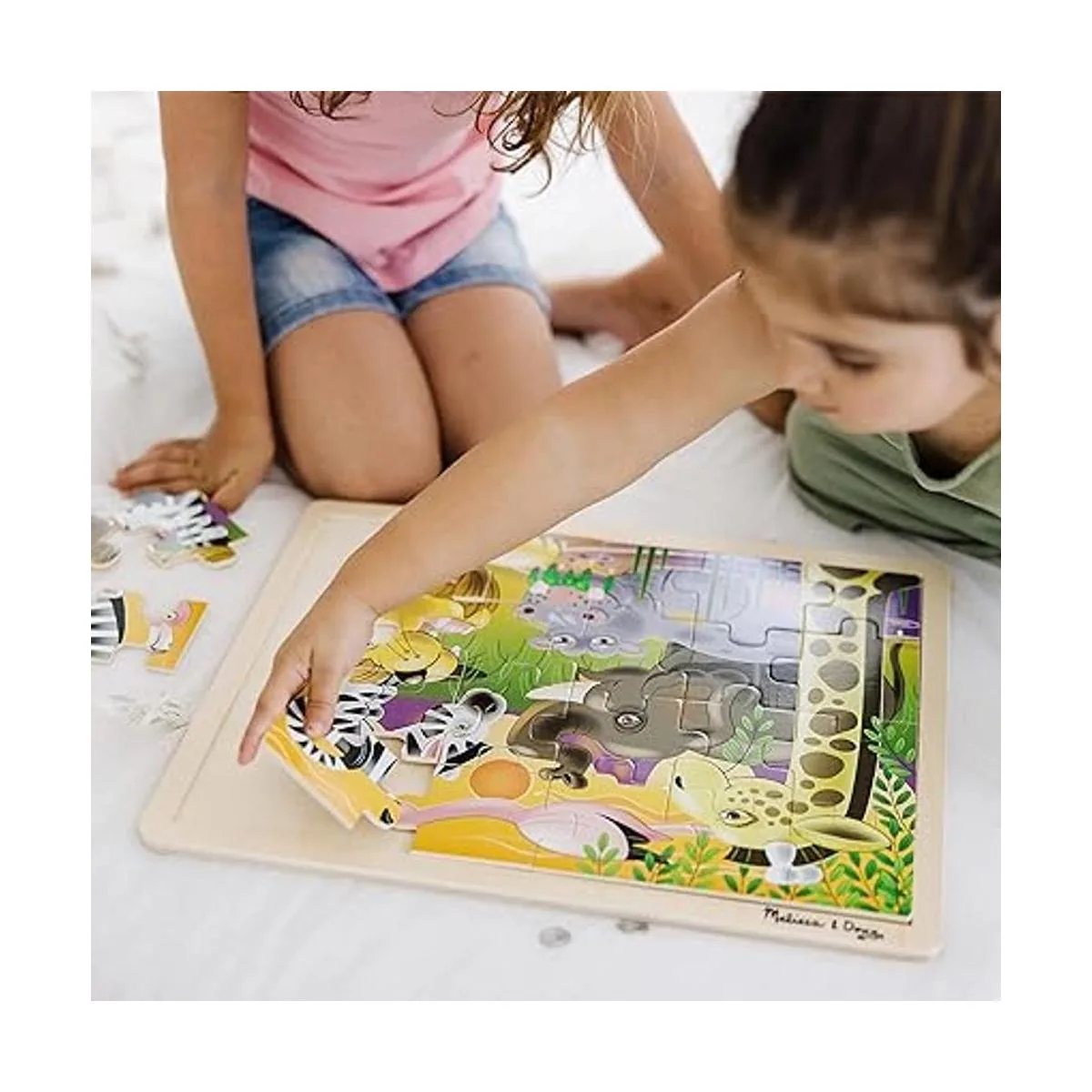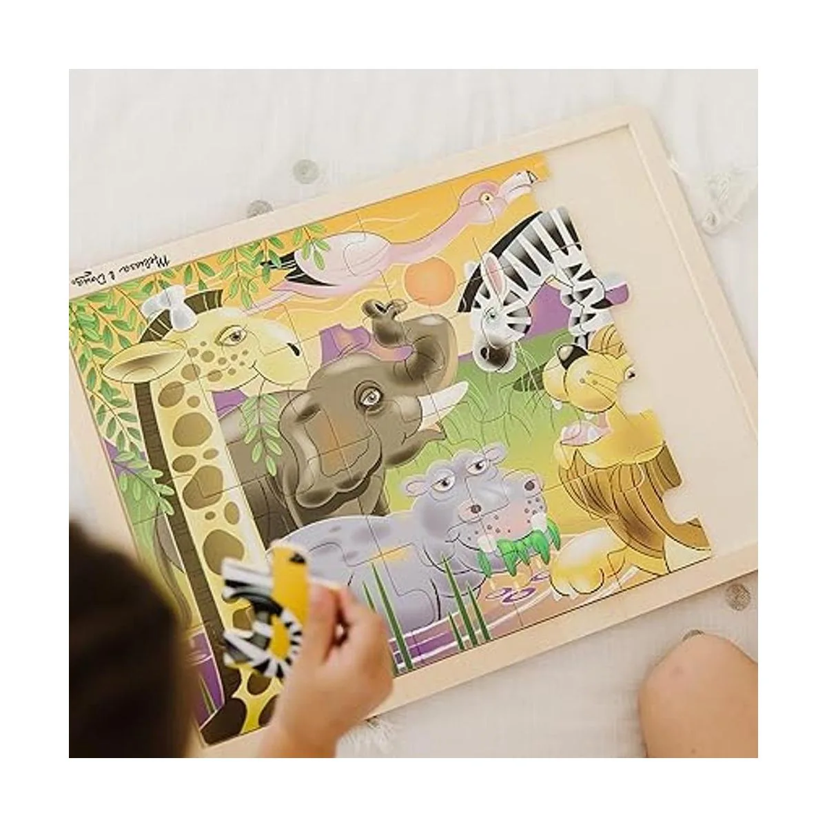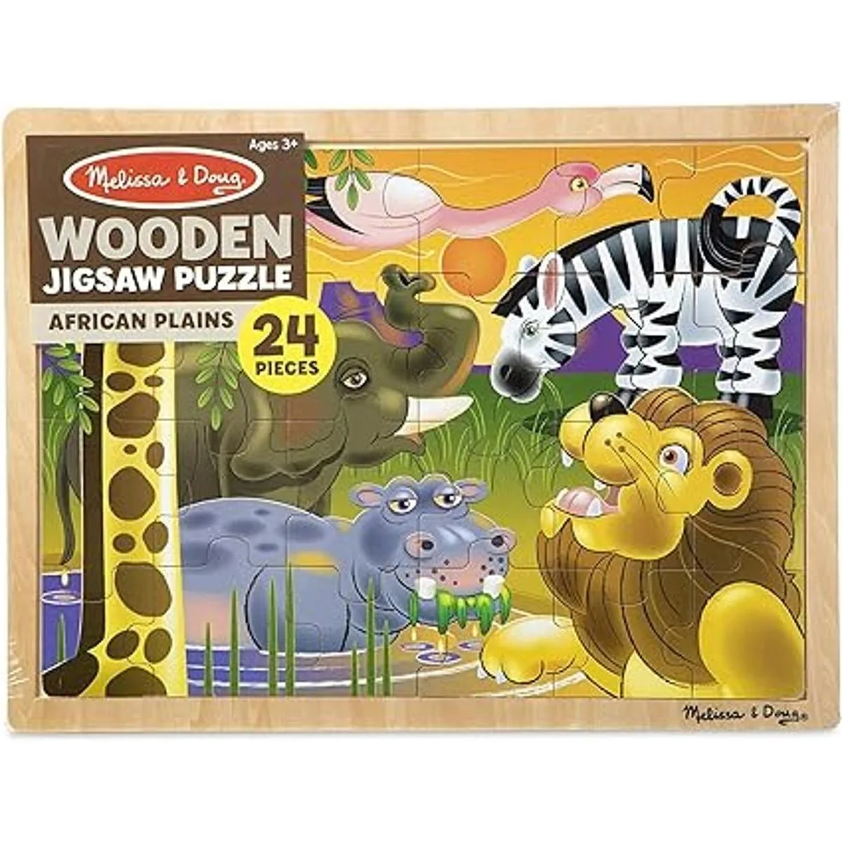 Rompecabezas Melissa Doug de safari en llanuras africanas, de madera con bandeja de almacenamiento 24 piezas