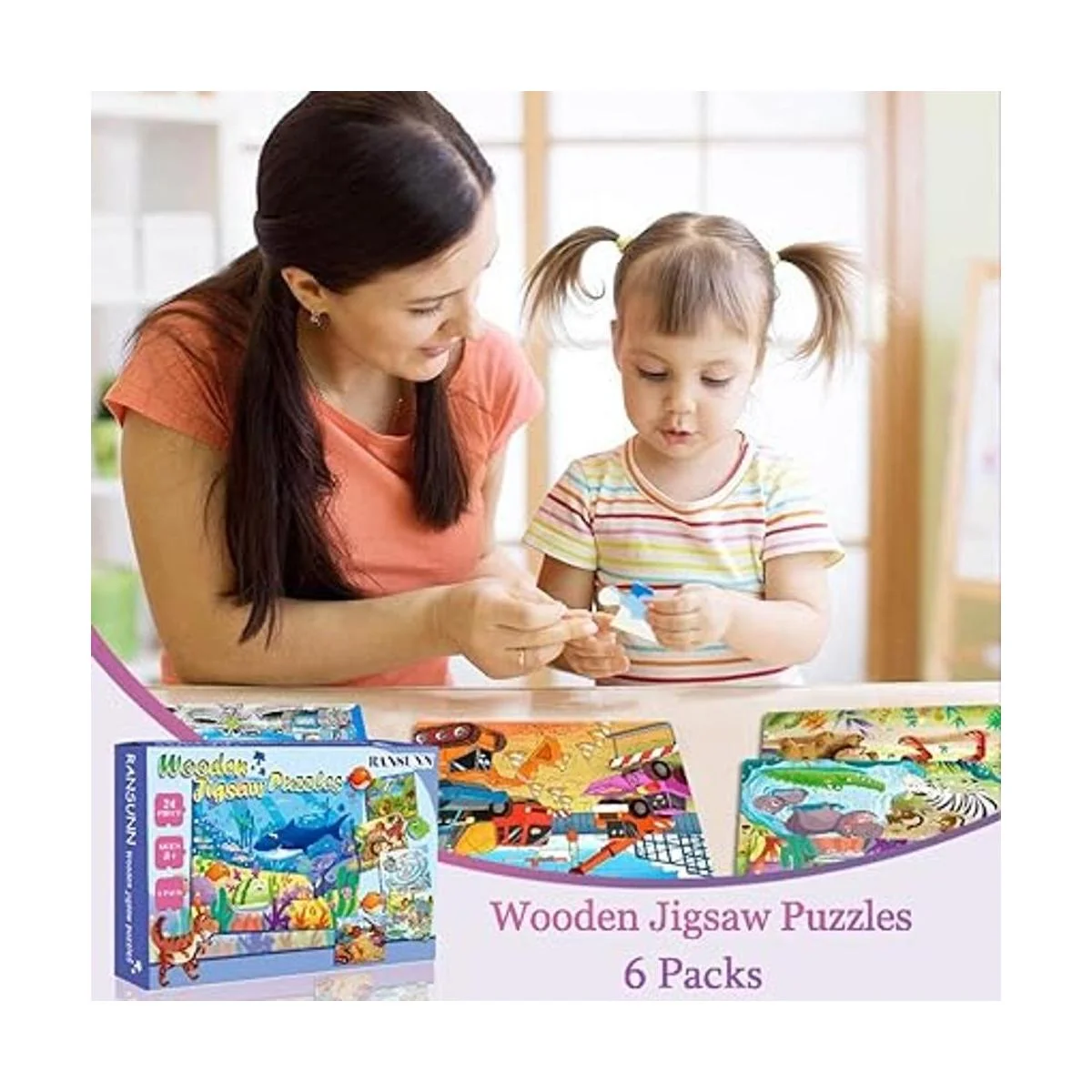 Rompecabezas para niños de 3 a 5 años, rompecabezas de madera coloridos de 24 piezas para niños pequeños, rompecabezas educativos para niños y niñas 6 rompecabezas