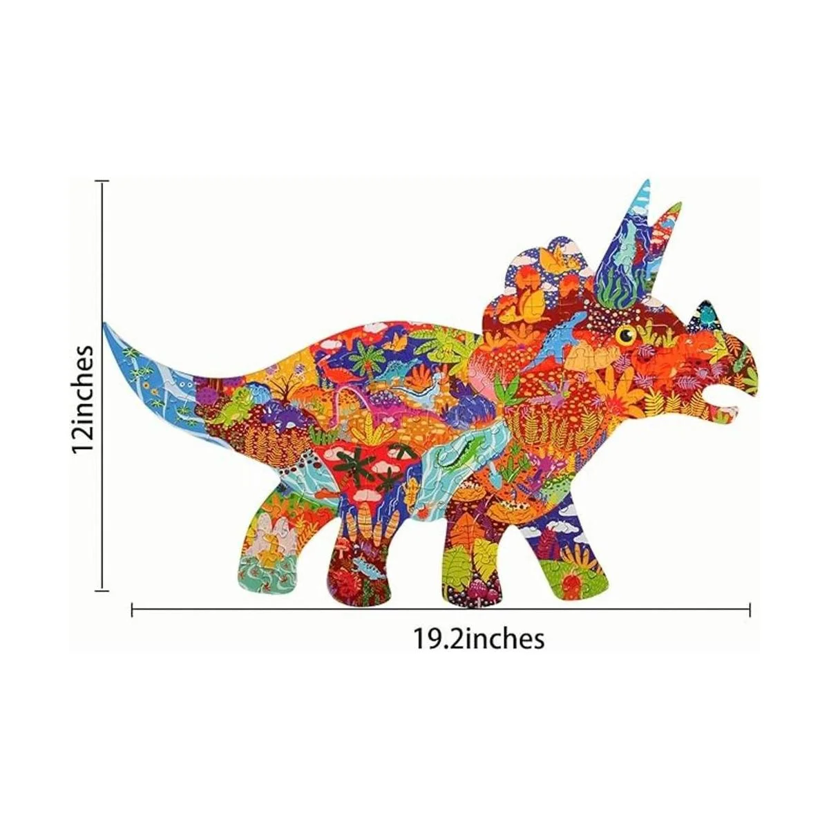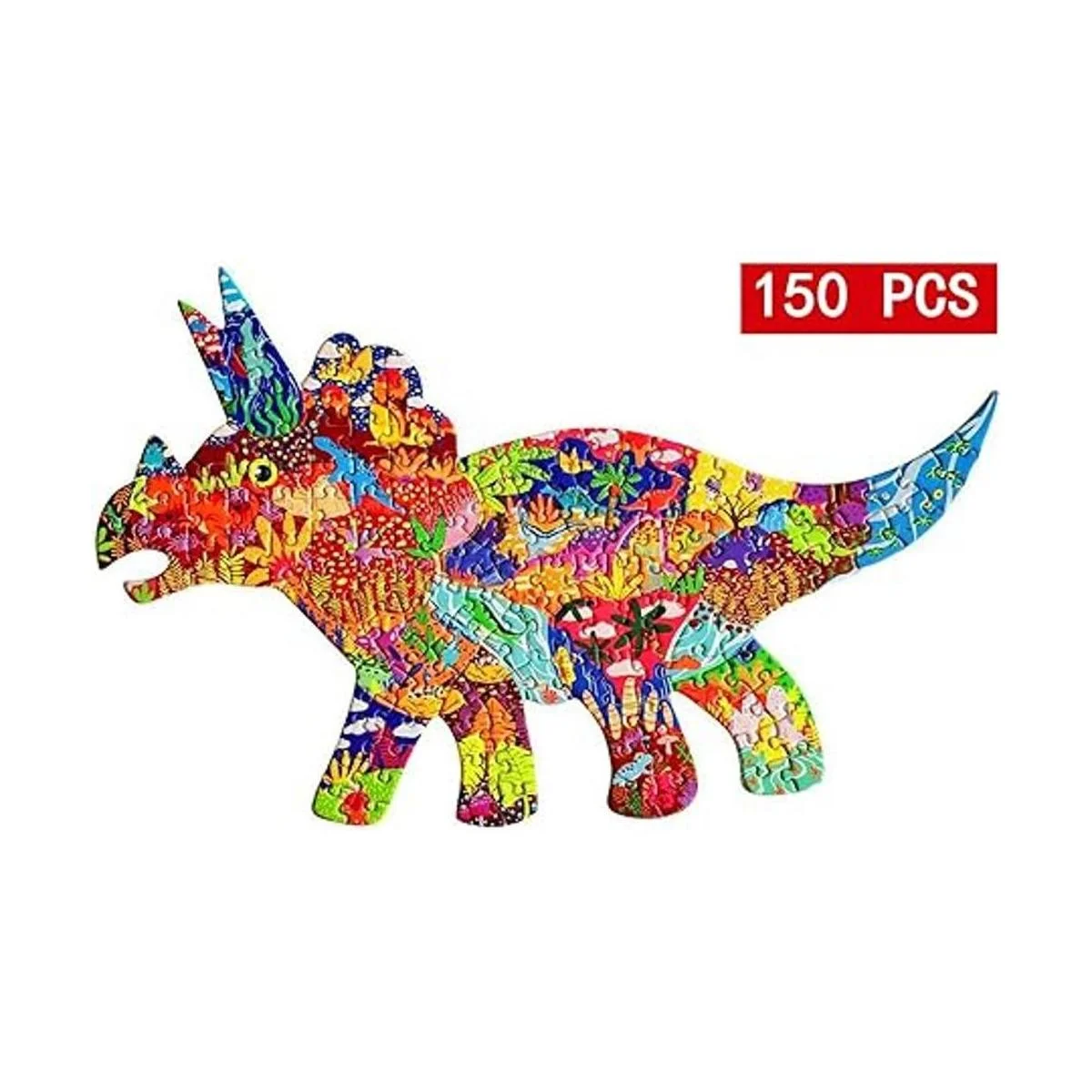 Rompecabezas de 150 piezas: el rompecabezas de 150 piezas con forma de dinosaurio Triceratops es perfecto para niños de 4 a 8 años en adelante. El rompecabezas completo mide 19.2 x 12 x 0.08 pulgadas.