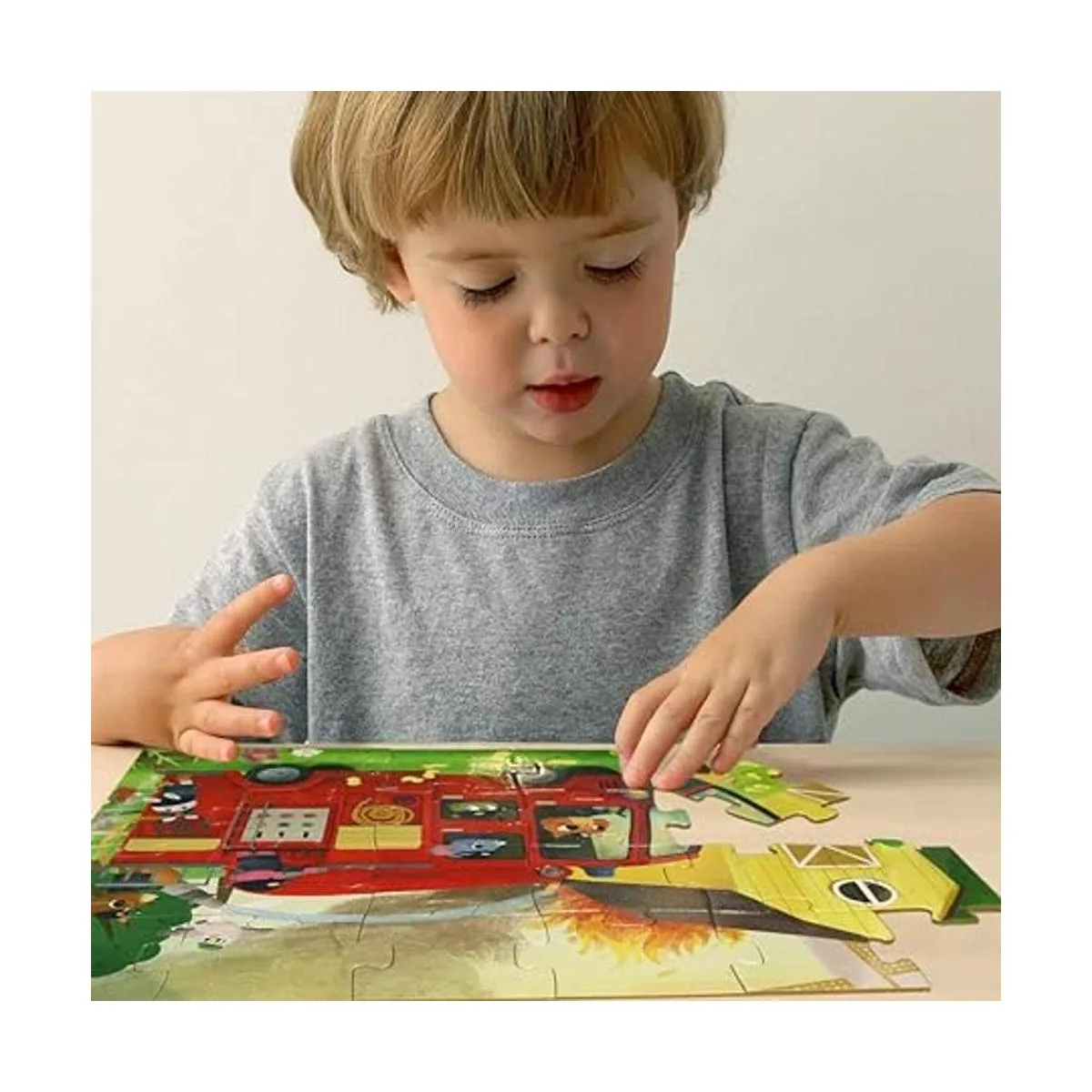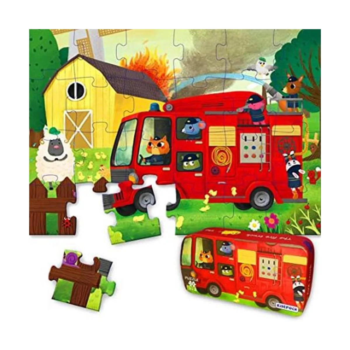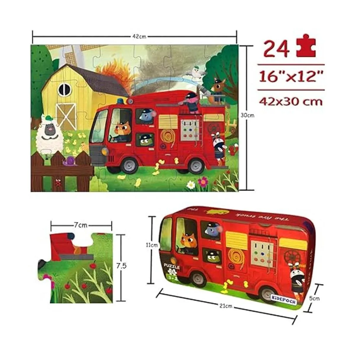 Rompecabezas para niños de 4 a 8 años de edad, 24 piezas grandes de camiones de bomberos para niños, rompecabezas de juguete preescolar profesional para niños y niñas 16.0 x 12.0 in con caja de almacenamiento