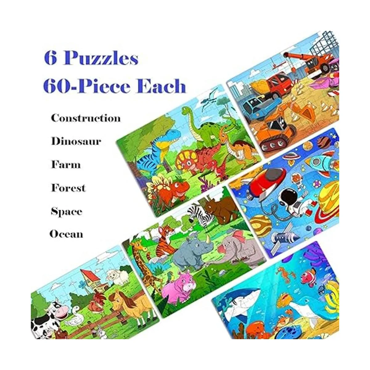 Tamaño: el rompecabezas para niños incluye 6 x 60 piezas, el tamaño de cada pieza después de completar es de 11.6 x 8.85 x 0.19 pulgadas.