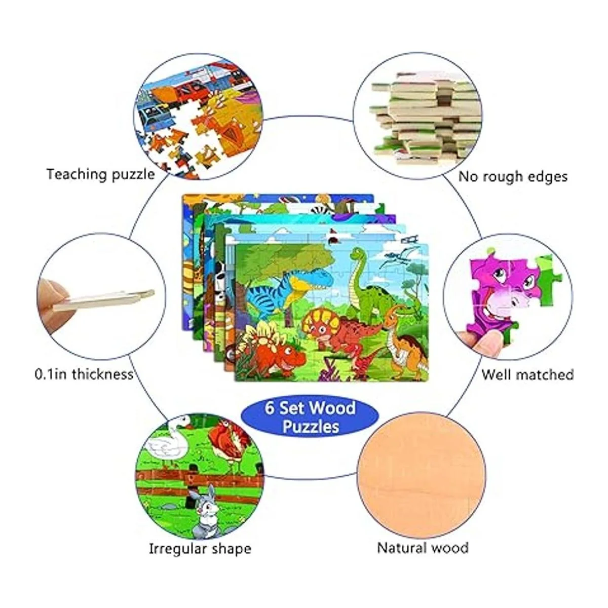 Rompecabezas de madera para niños: estos rompecabezas de 6 x 60 piezas para niños están hechos de madera de calidad superior, altamente duradera, después de un pulido fino, tienen una superficie lisa y esquina redonda, seguro para los más pequeños.