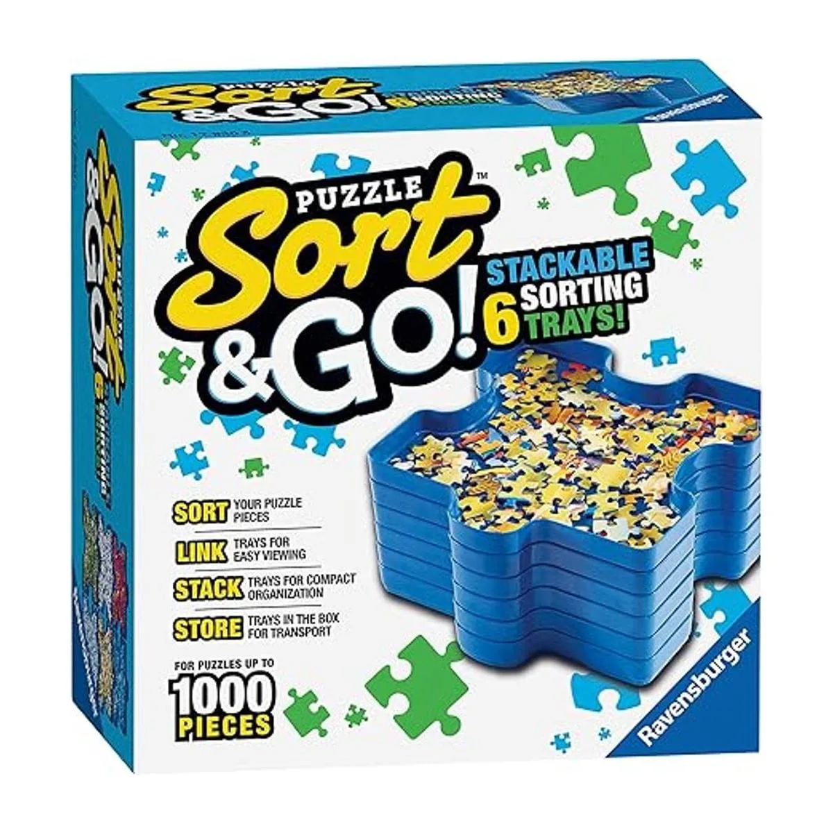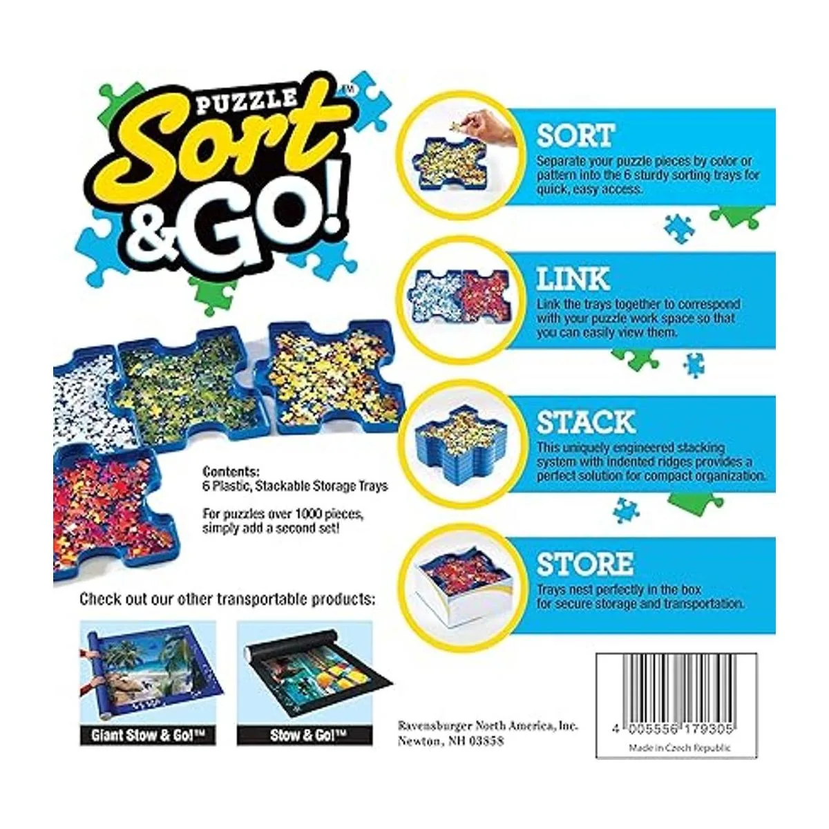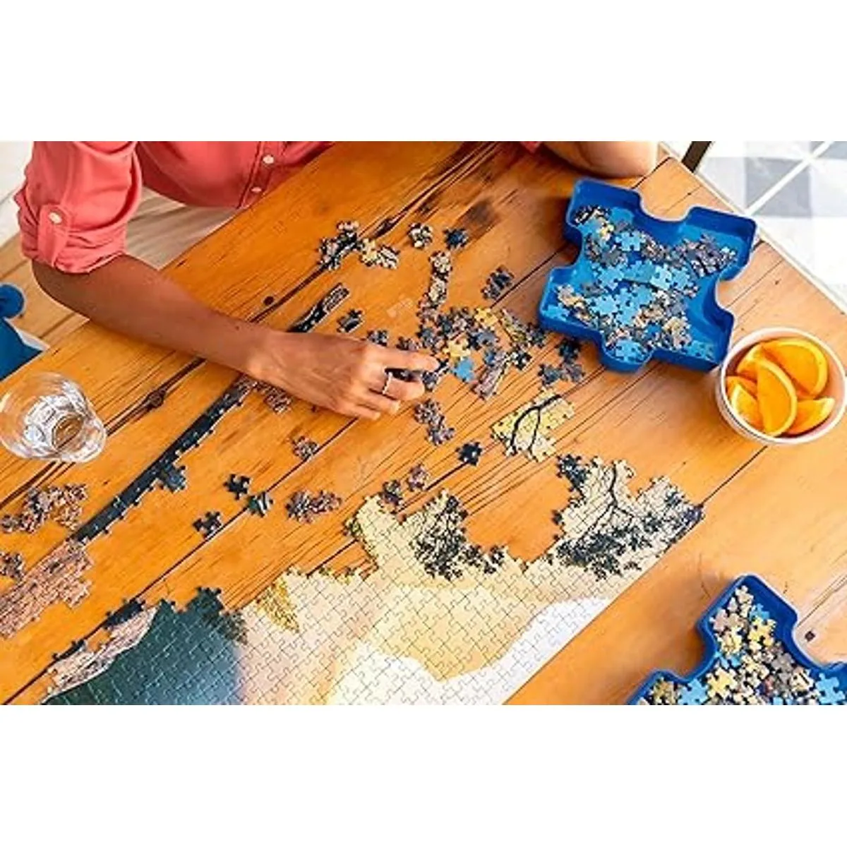 Fácil clasificación de piezas de rompecabezas: separa las piezas del rompecabezas por color, patrón o forma en las 6 bandejas de clasificación resistentes para un acceso rápido y fácil.