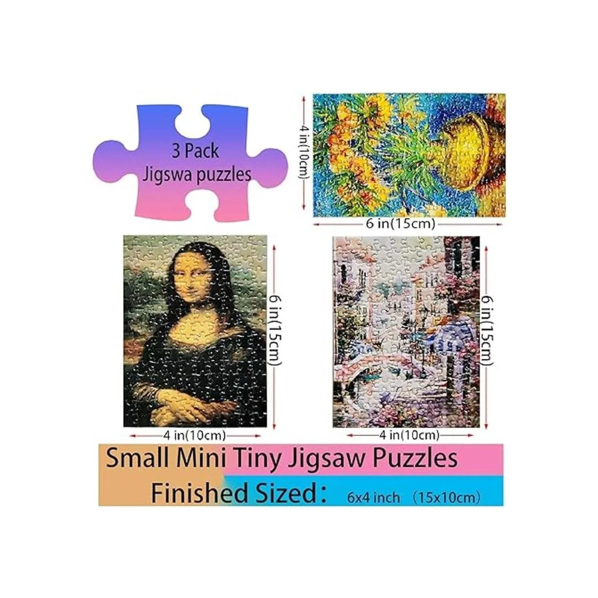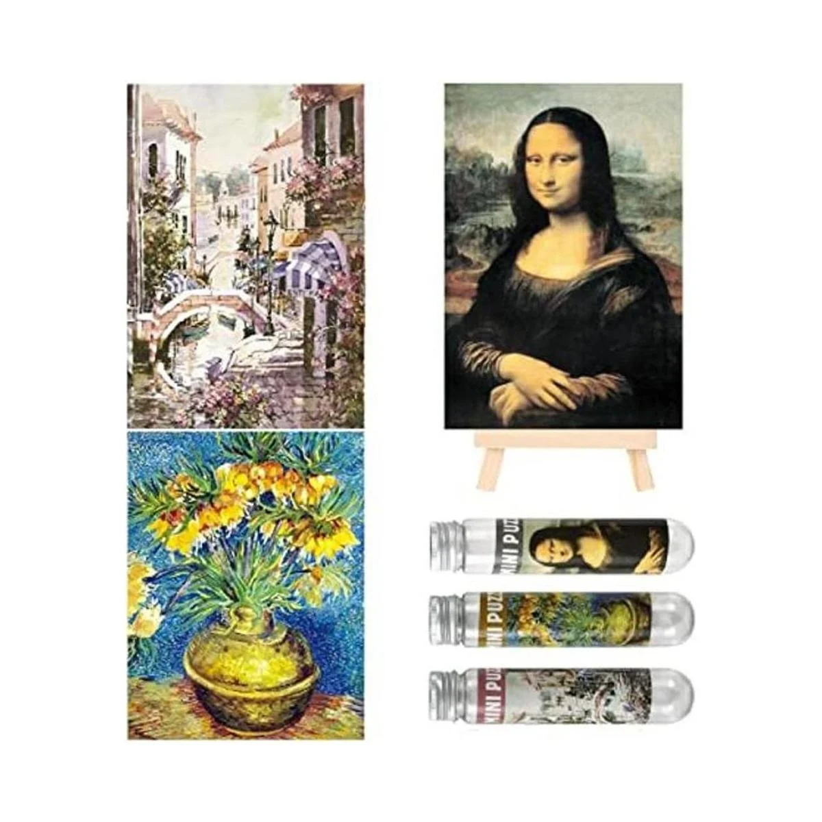 Rompecabezas pequeño para adultos rompecabezas desafiante mini rompecabezas para adultos 150 piezas pintura al óleo Mona Lisa Venecia decoración del hogar puzzles 6 x 4 pulgadas, paquete de 3, ahorro de rompecabezas y mini caballete incluido