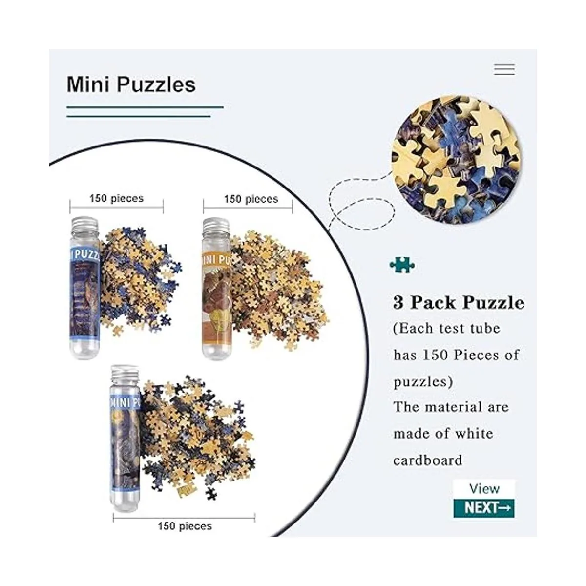 Rompecabezas de 150 piezas: los rompecabezas para adultos incluyen 3 tubos de ensayo separados, cada rompecabezas tiene 150 piezas. Cada pieza de rompecabezas es más pequeño que tu dedo. Podría proporcionarte horas de diversión y entretenimiento armando este increíble rompecabezas juntos, un pasatiempo ideal para que todos disfruten