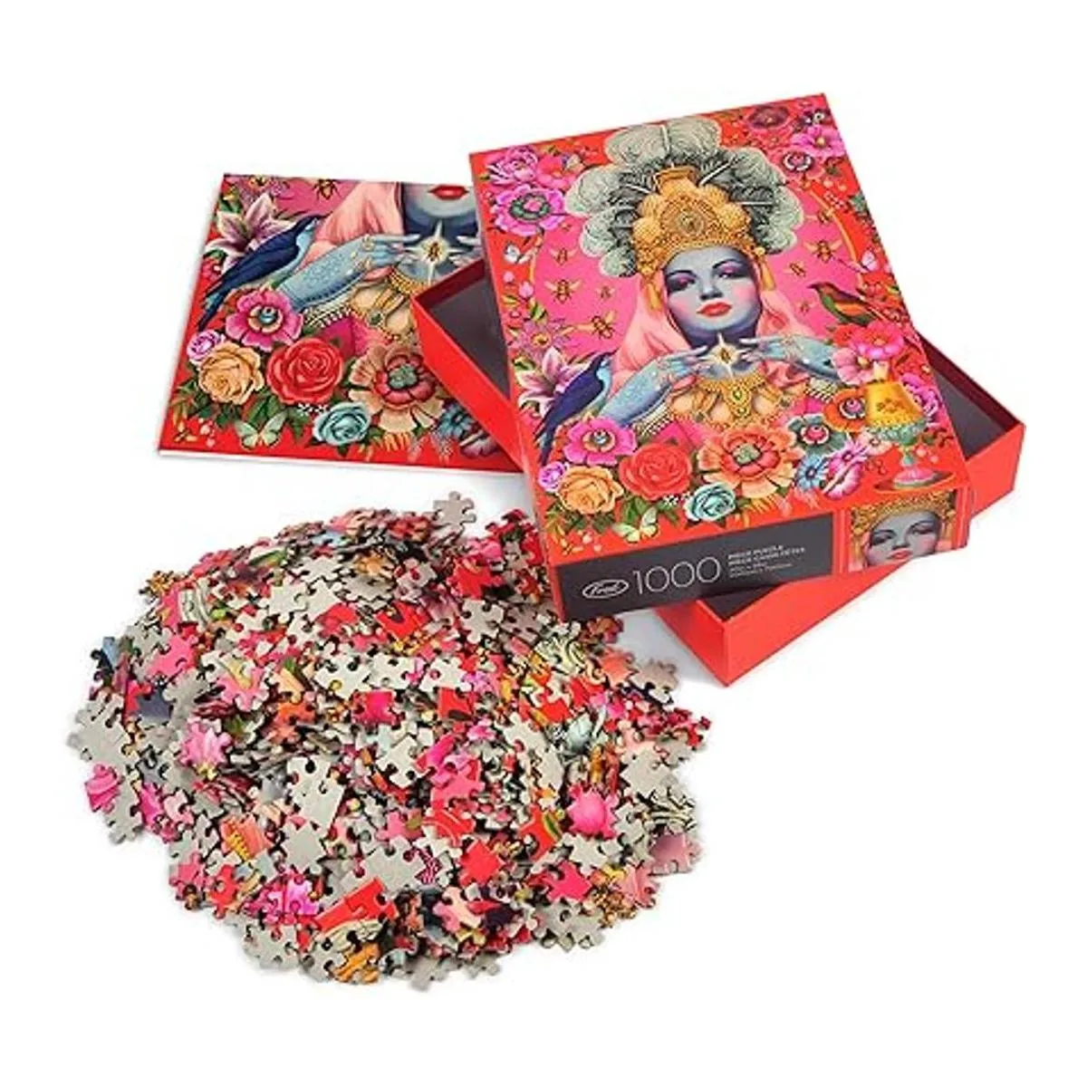 Rompecabezas de 1000 piezas: este gran rompecabezas de 1000 piezas mide 20.1 in x 28.0 in y cuenta con una obra de arte original de Fiona Hewitt. Se incluye una inserción a todo color del arte en cada caja.