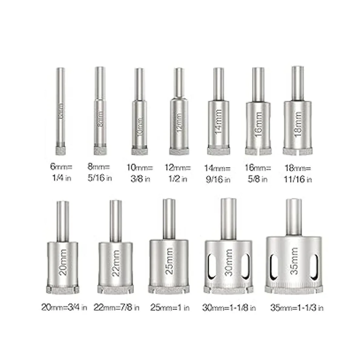 Rondarui Juego de sierras de agujero de diamante, juego de brocas de diamante, sierras de agujero para vidrio, mármol, piedra de granito, botellas, cerámica y azulejos, 12 piezas