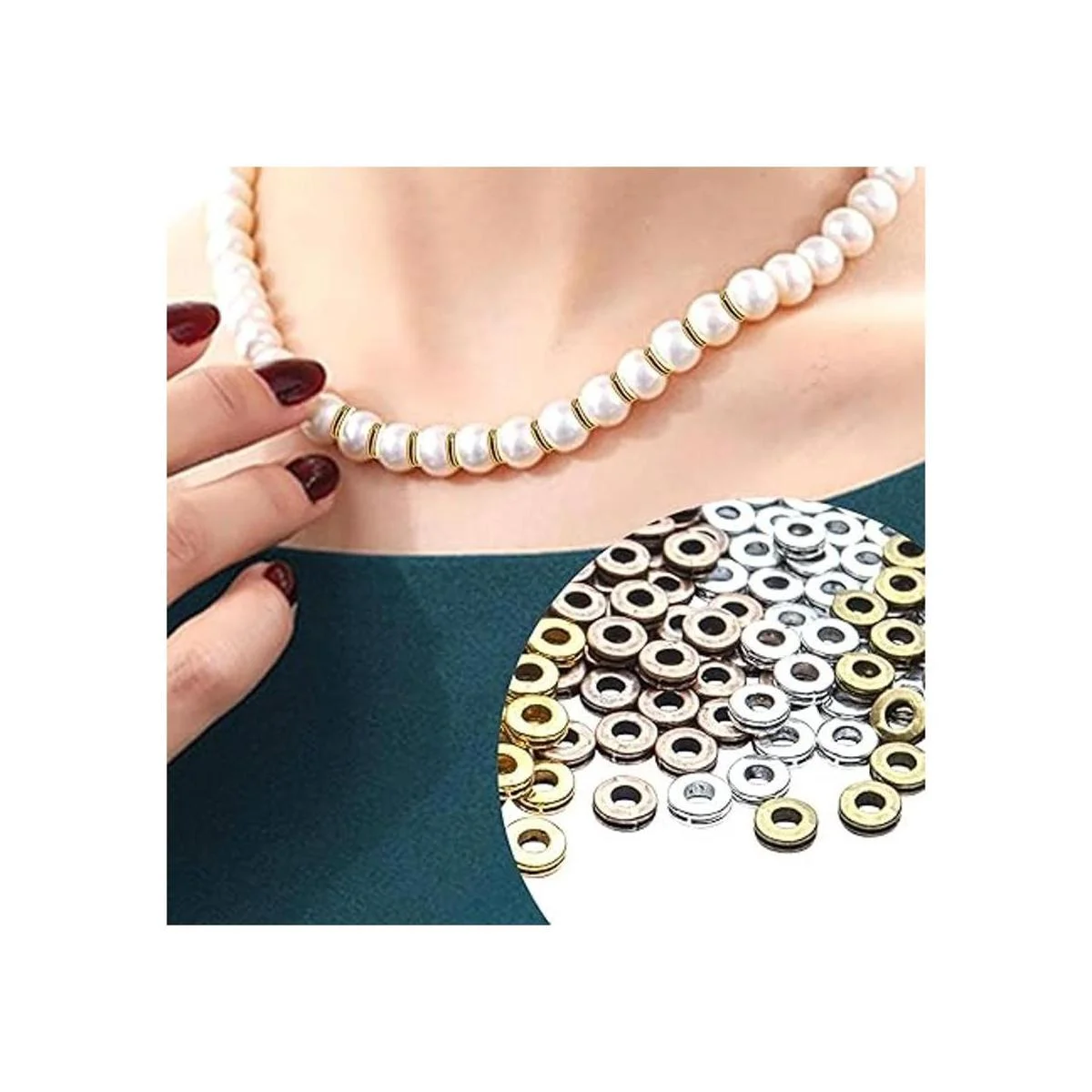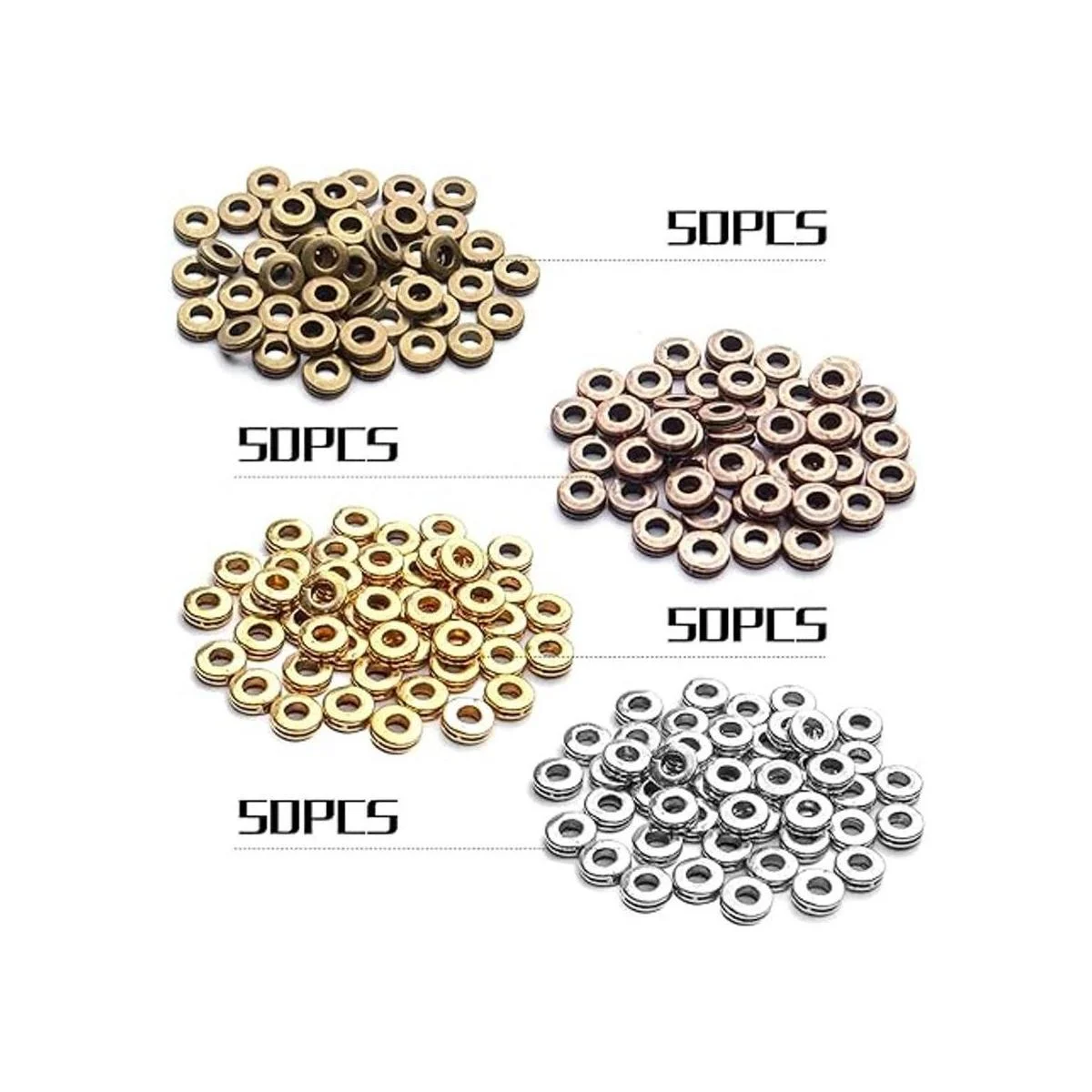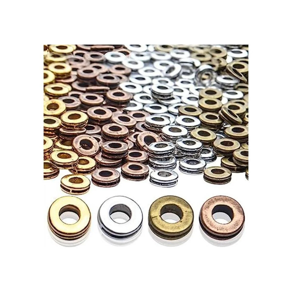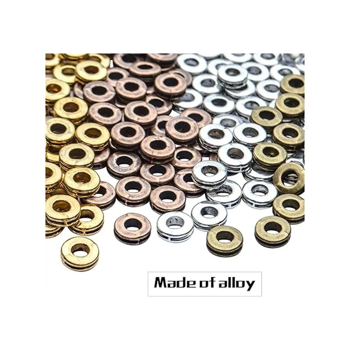 Rondelle Cuentas espaciadoras, 200 cuentas espaciadoras redondas planas de 0.236 in, cuentas espaciadoras redondas de metal, suministros para manualidades para hacer joyas, oro antiguo, plata antigua, bronce antiguo, cobre