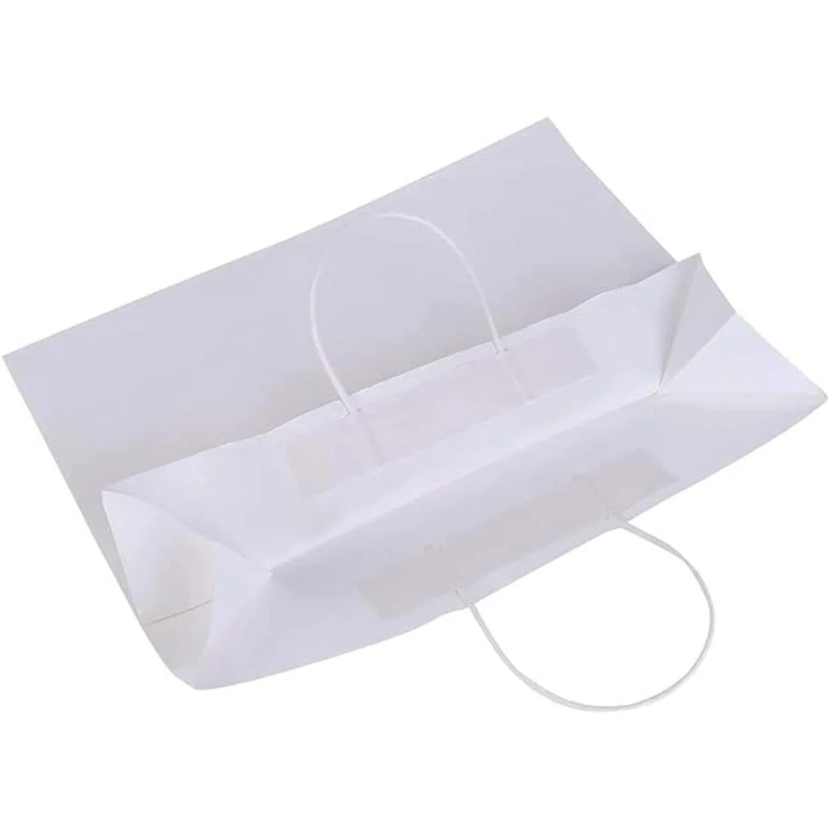 Bolsas blancas resistentes con asas trenzadas: las asas reforzadas Kraft están bien estructuradas y están diseñadas específicamente para soportar un peso pesado, no se desprenden como asas en otras bolsas. Todos los sellos de la bolsa son muy fuertes y no se abren ni se rompen fácilmente.