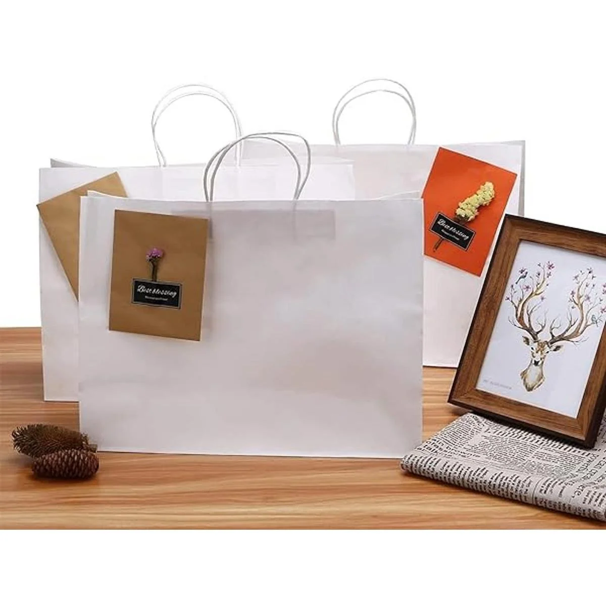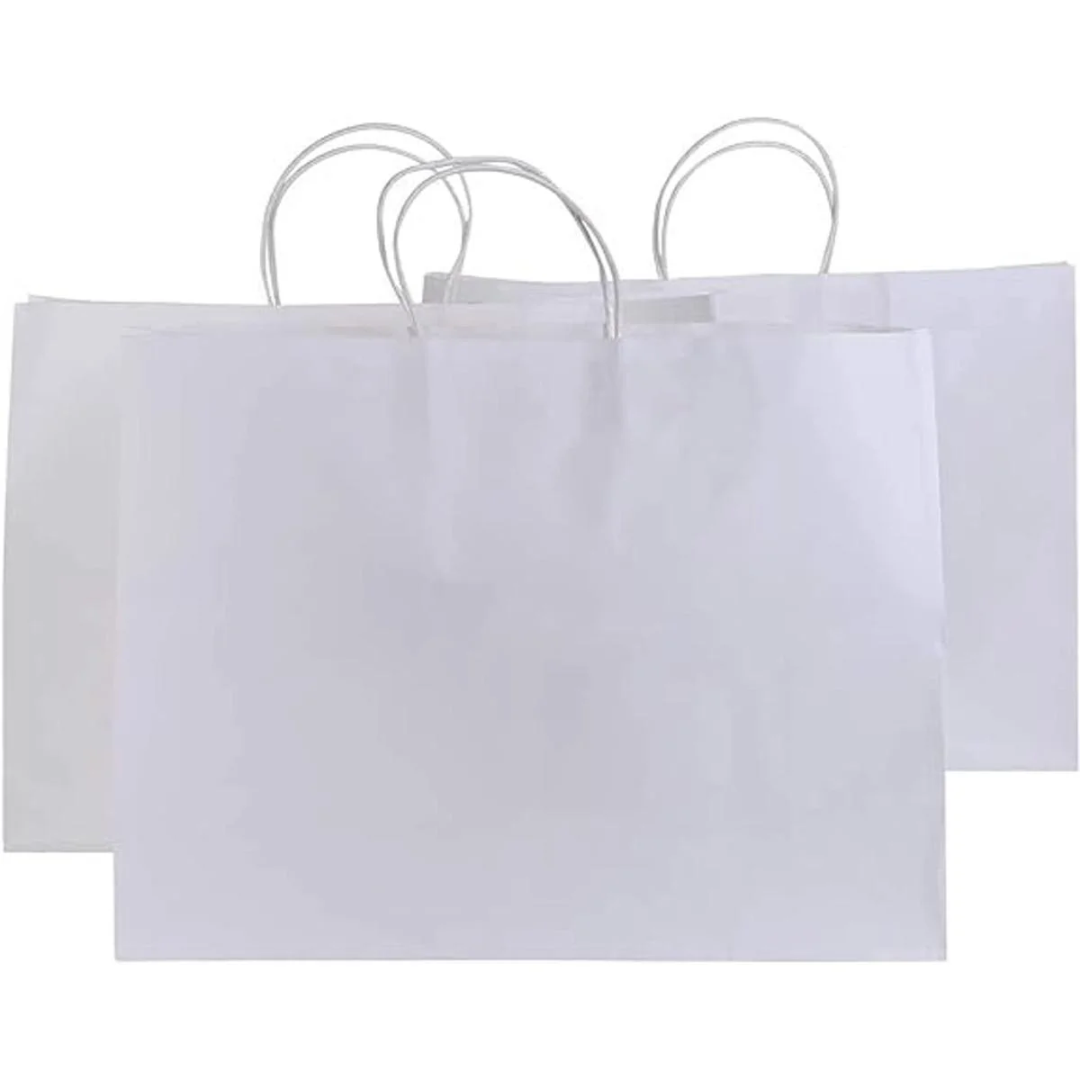 Ronvir Bolsas de regalo de 16 x 6 x 12 pulgadas, 50 bolsas grandes de papel blanco con asas, bolsas de compras recicladas a granel, bolsas de venta al por menor, bolsas de fiesta