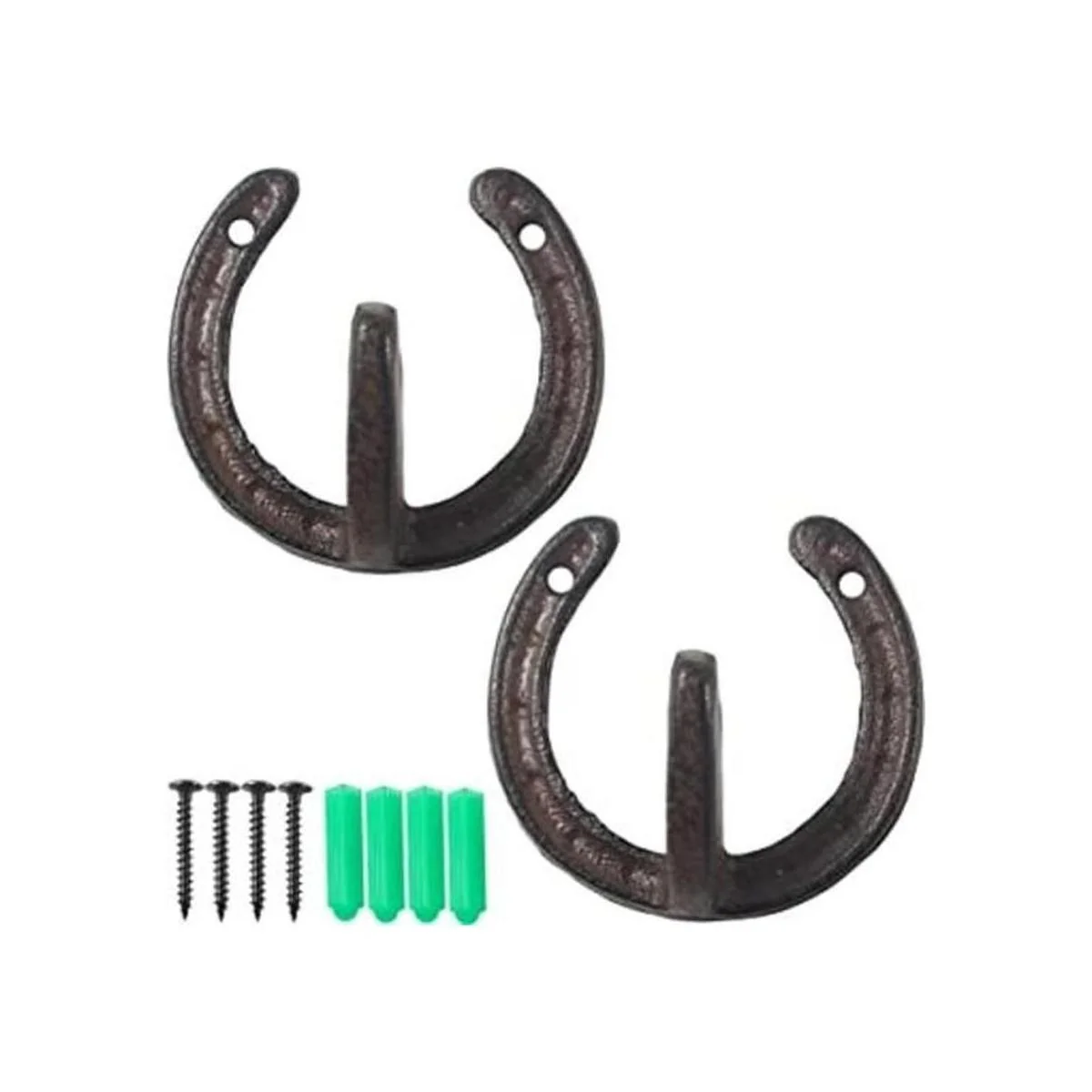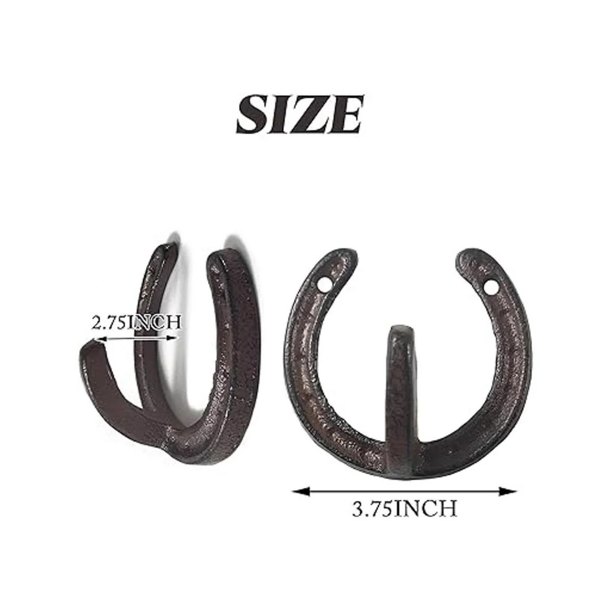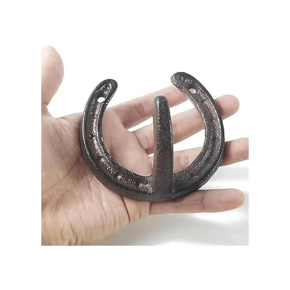 RONYOUNG 2 ganchos de herradura individuales occidentales de hierro fundido para la pared marrón oscuro